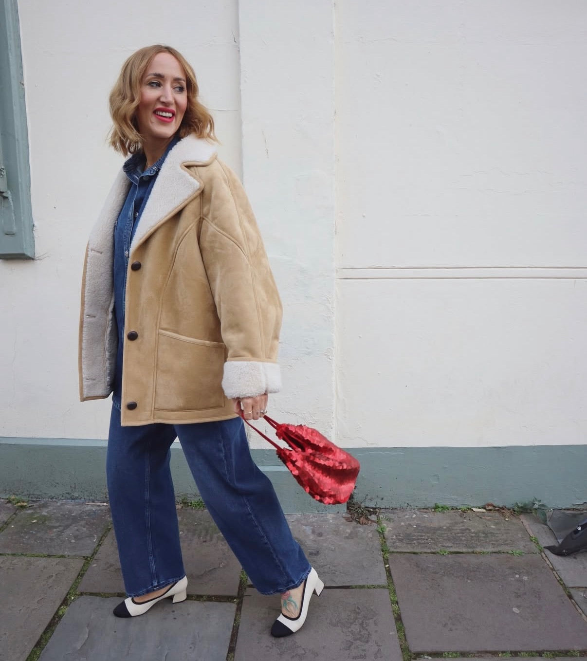 Mango Shearling Coat, Size L