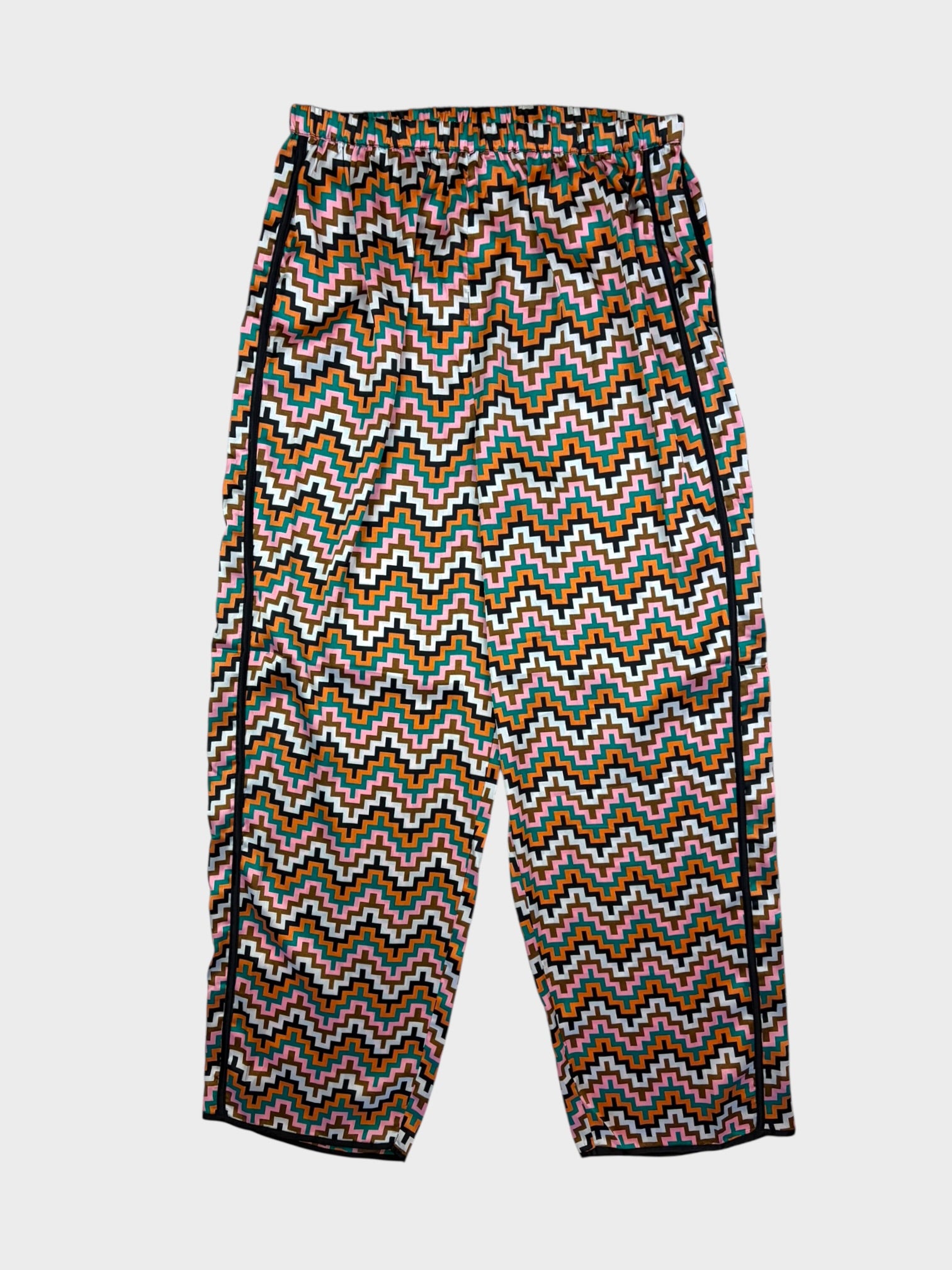 Matching wide leg trousers with black piping detail down side seams