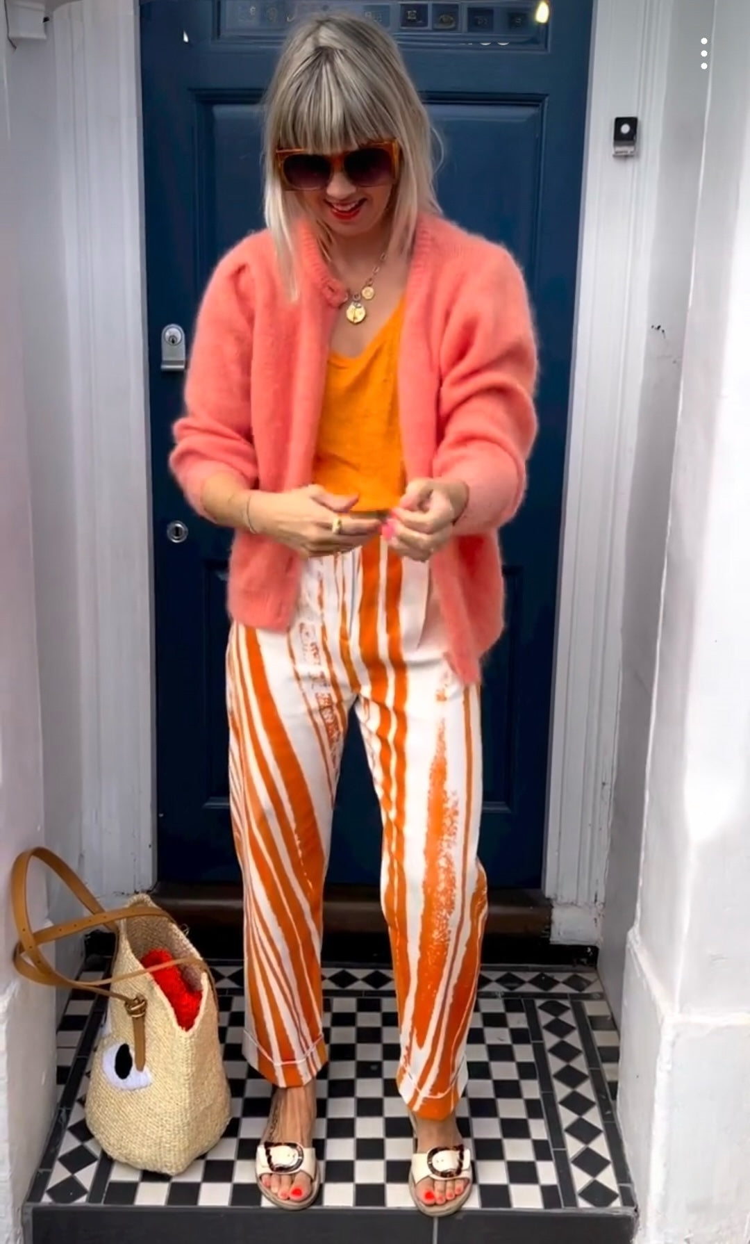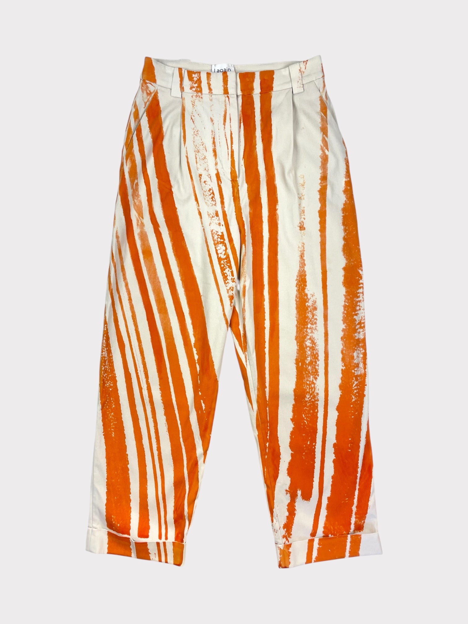 Upcycled "& Other Stories" trousers with bold orange stripe print