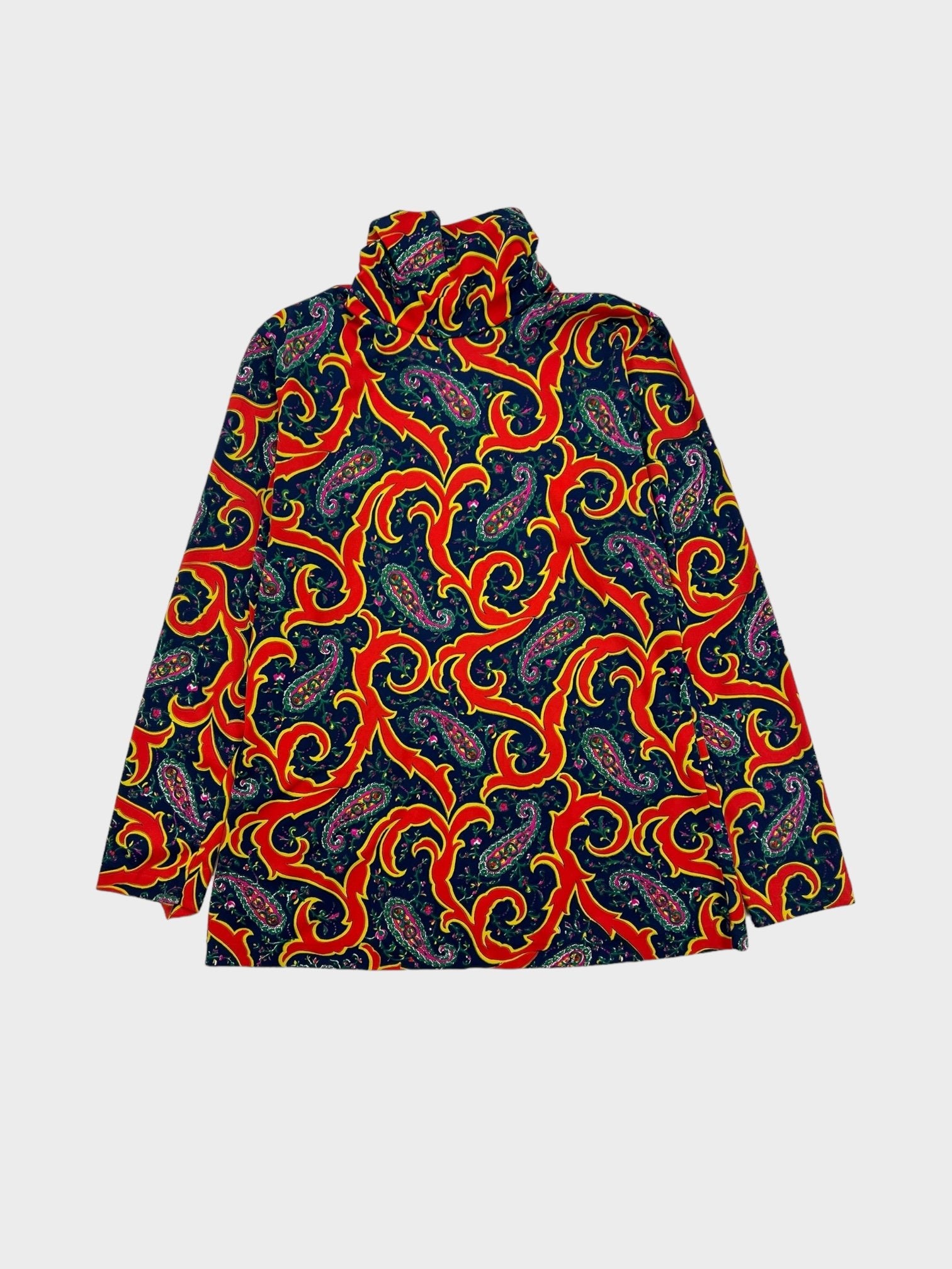 Abstract print multi colour top with high neck detail