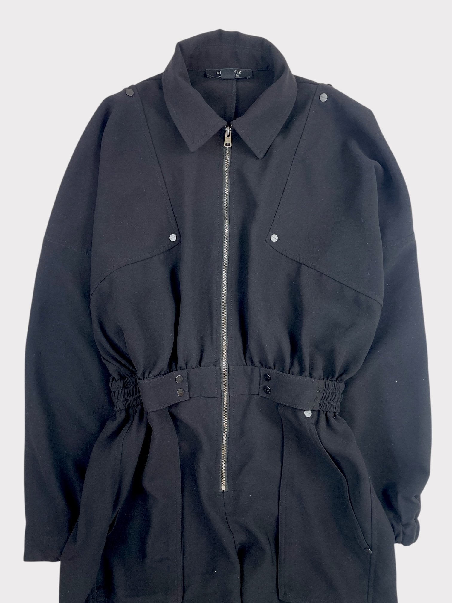 Black boiler suit style jumpsuit with long sleeves and cargo style pockets