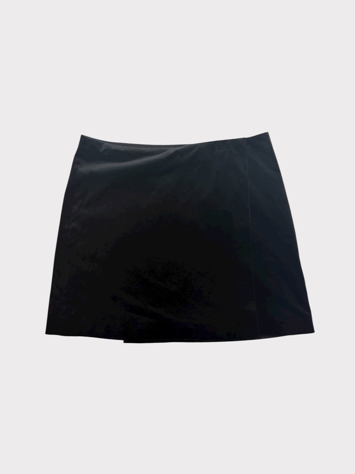 Black velvet wrap A-line mini skirt with snap button fastenings