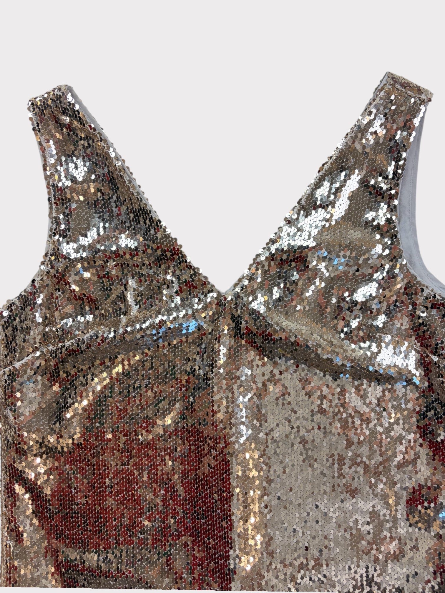 Silver sequin boxy fit vest top with wide straps and bust dart detail