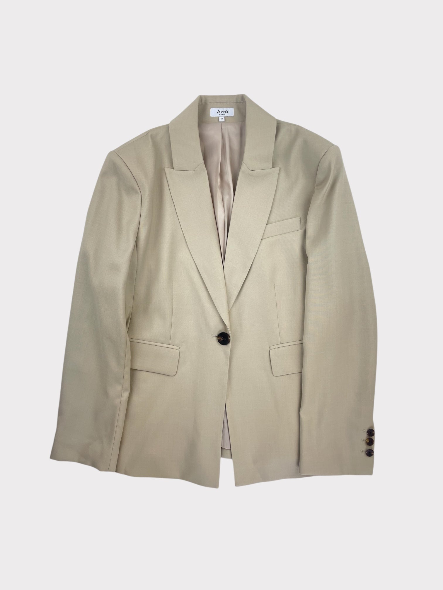 Light beige wool blend single breasted blazer with pockets and single button closure