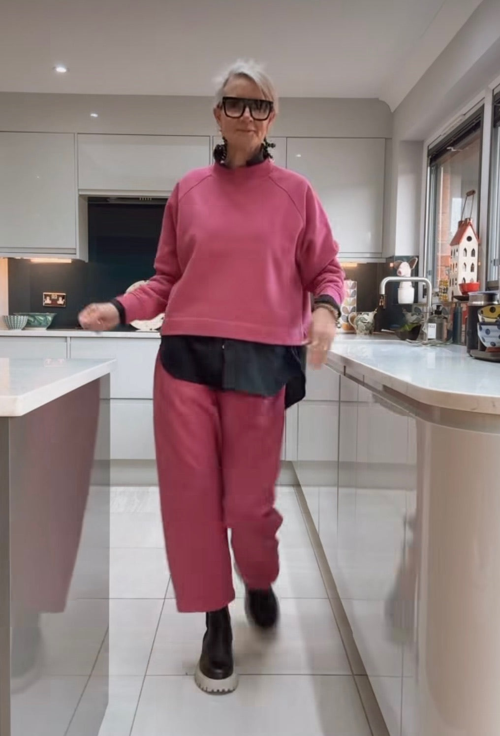 Matching barrel leg paneled joggers with multiple pockets and drawstring at waist