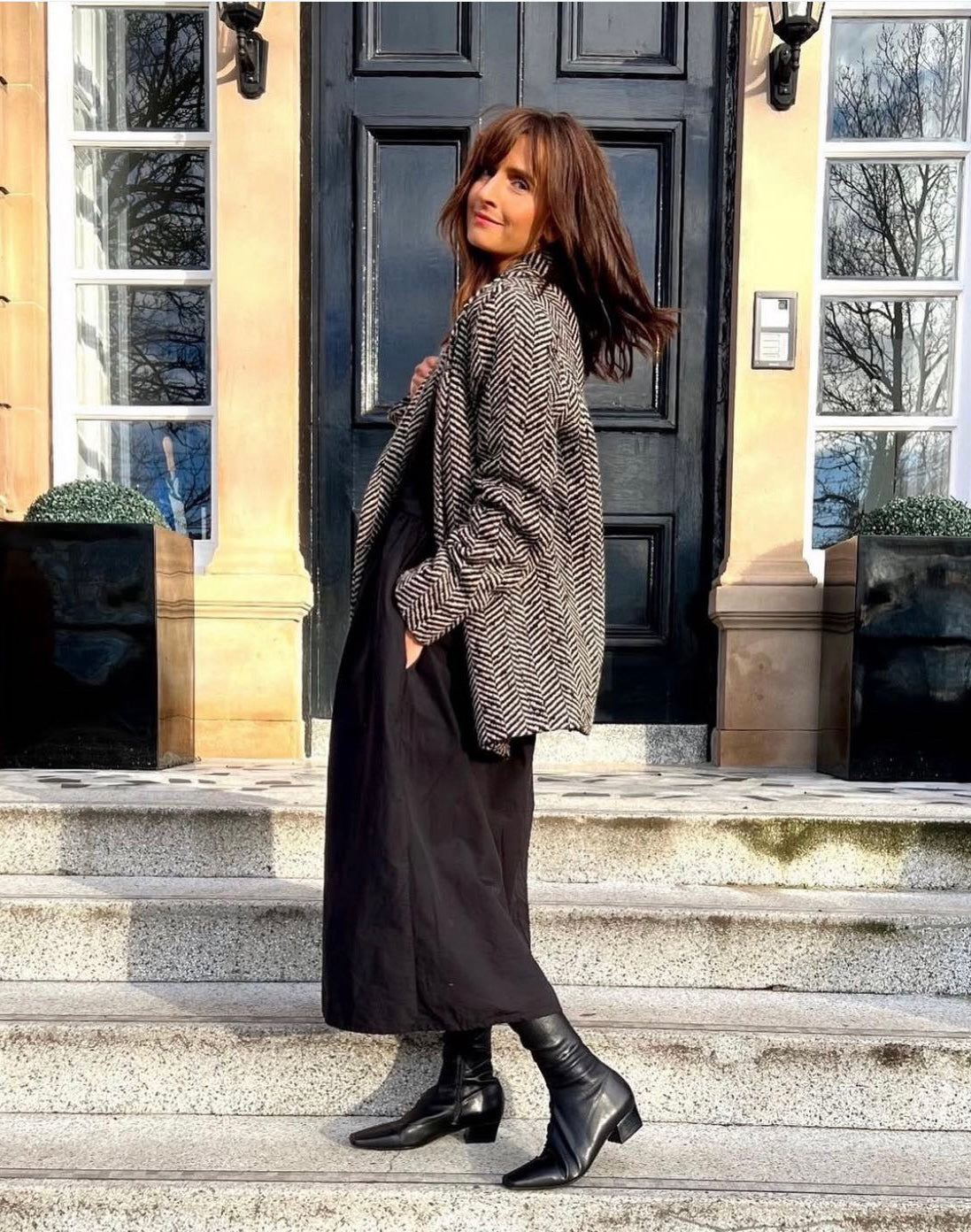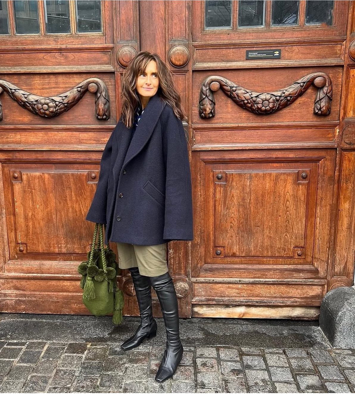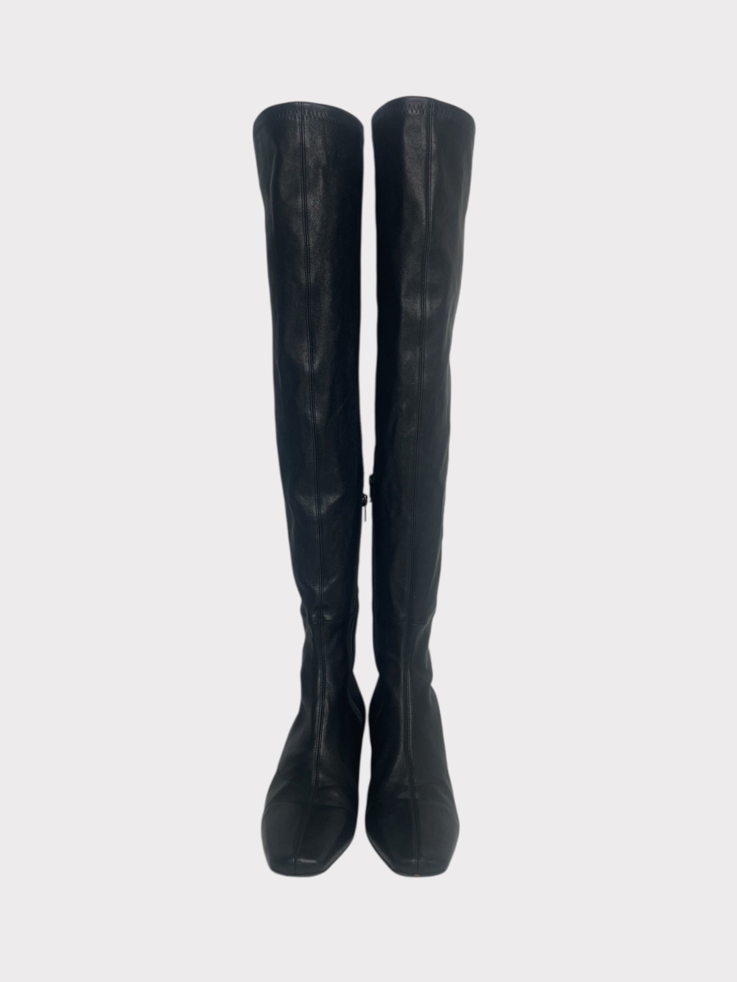Black over-the-knee boots with square toe and small block heel