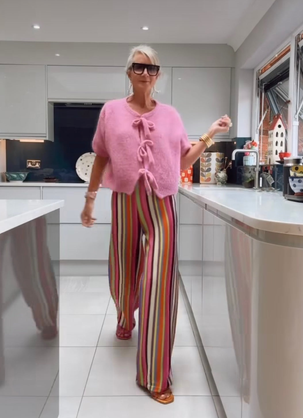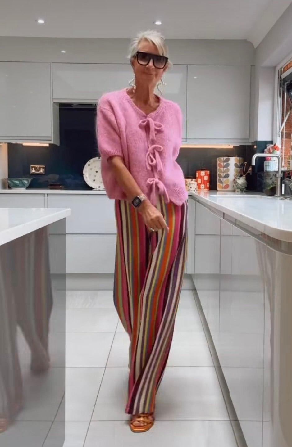 Pink boxy fit knitted cardigan with triple tie fastening