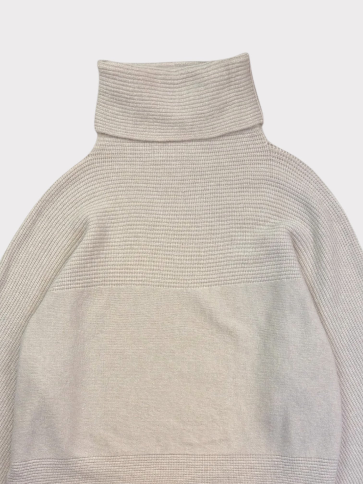 Cream boxy fit long sleeve knitted jumper with roll neck and rib details