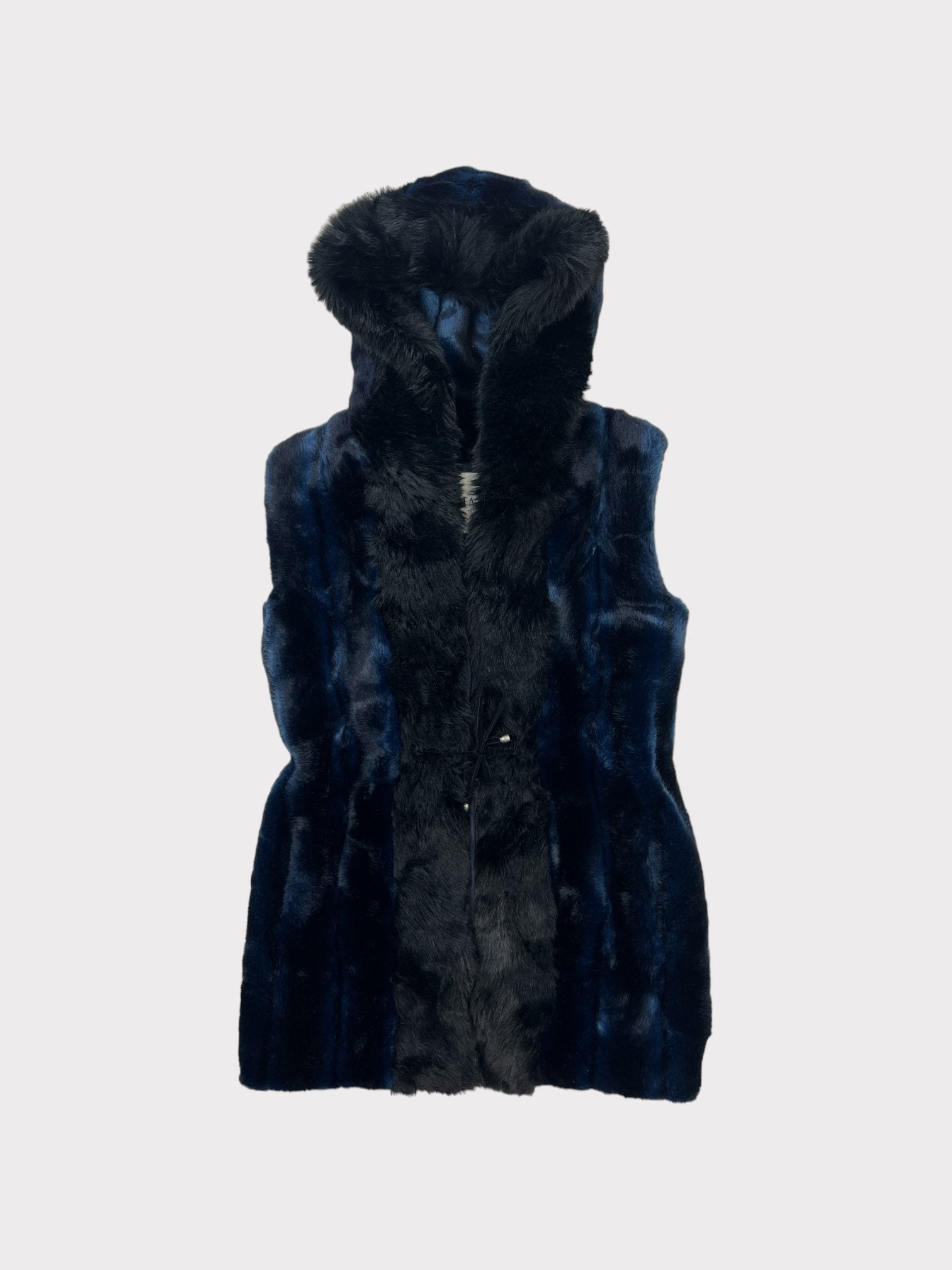 Dark blue/black hooded faux fur gilet coat with side pockets