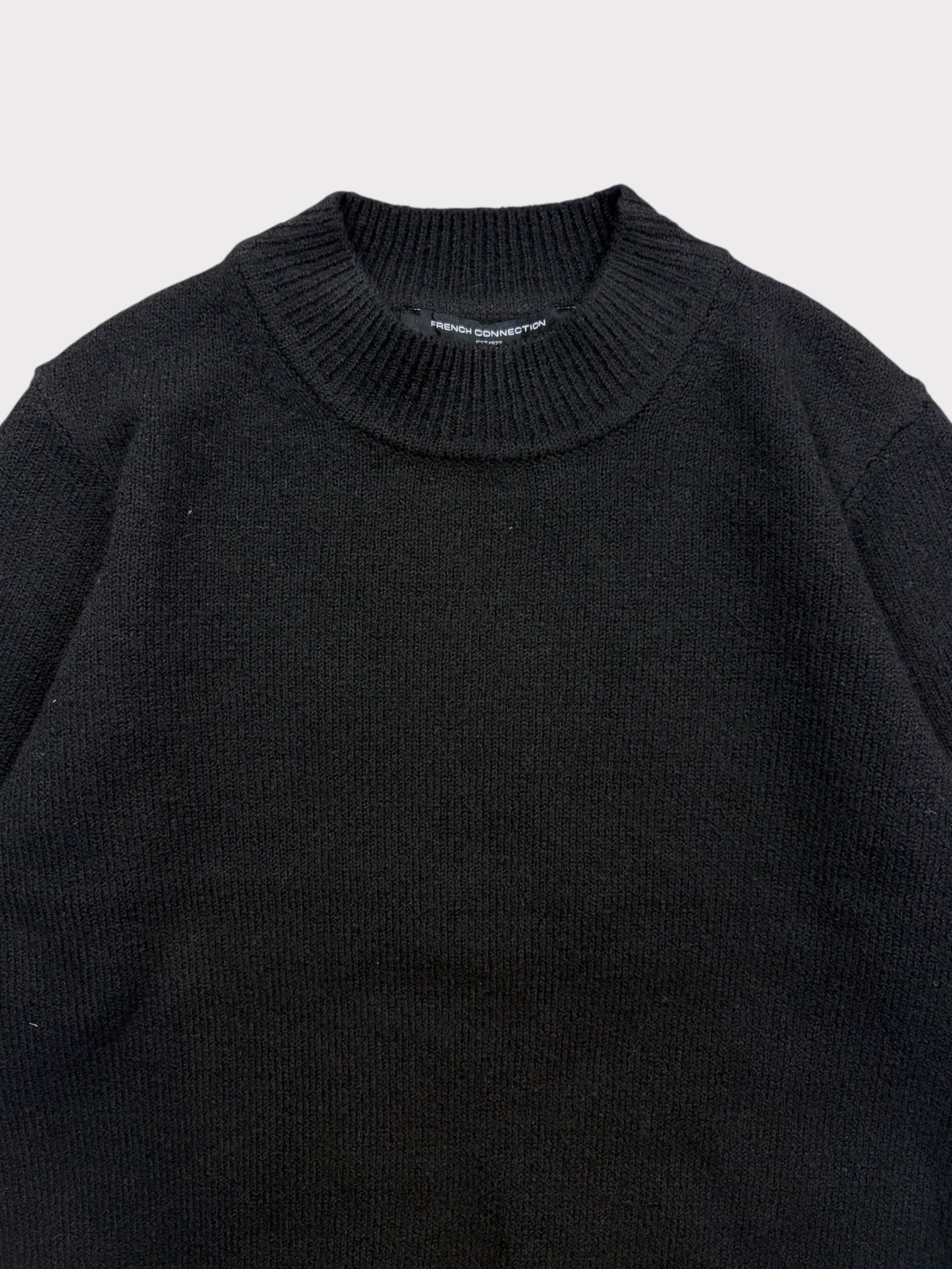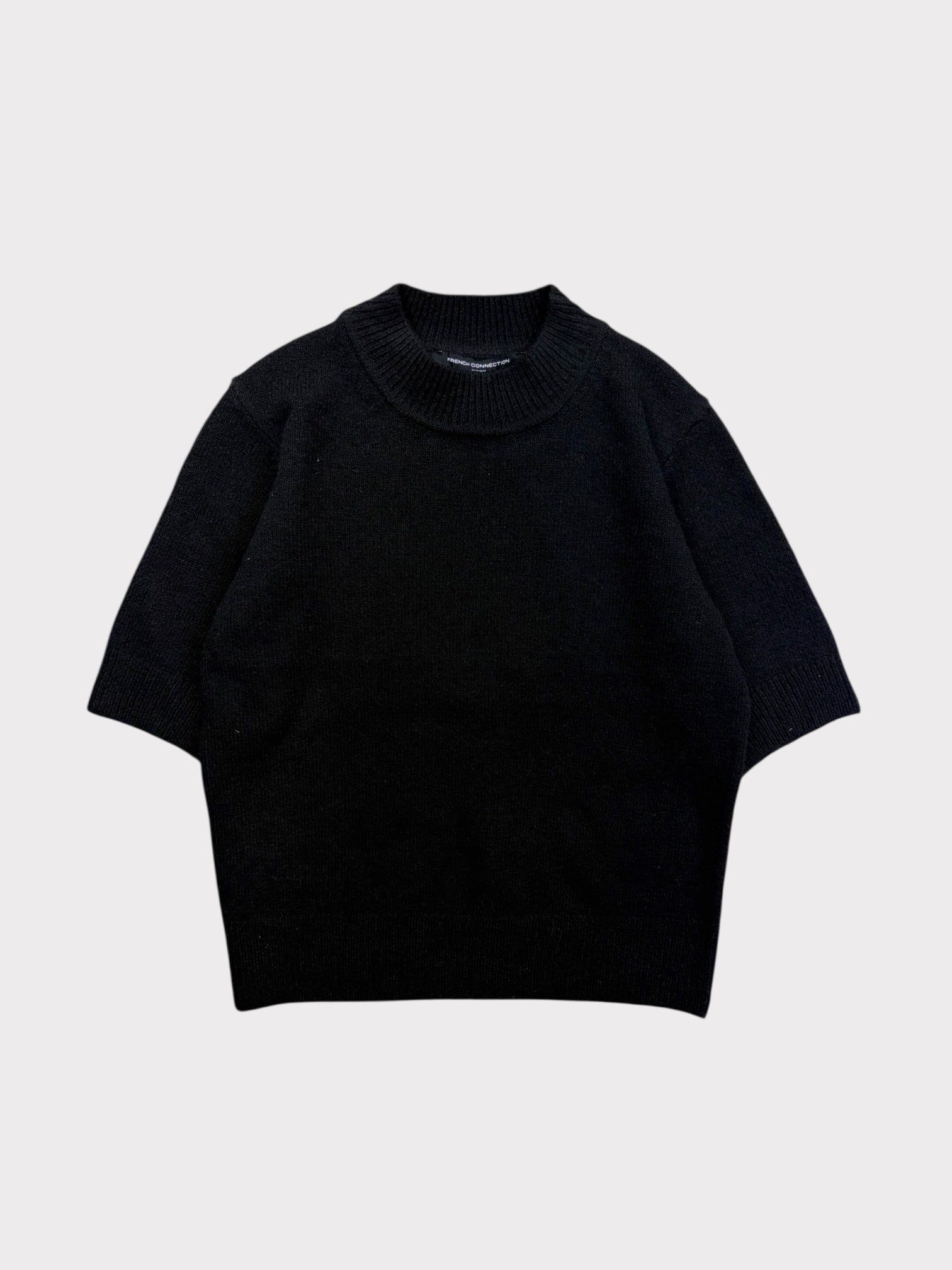 Black knitted short sleeve top with mock neck