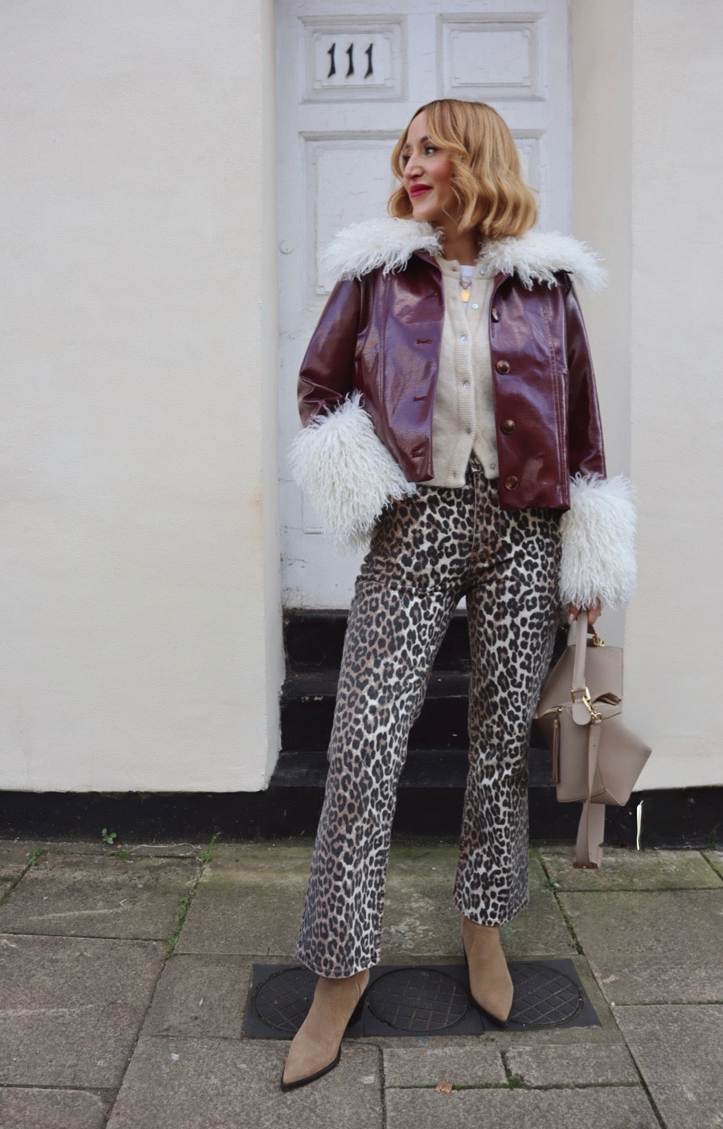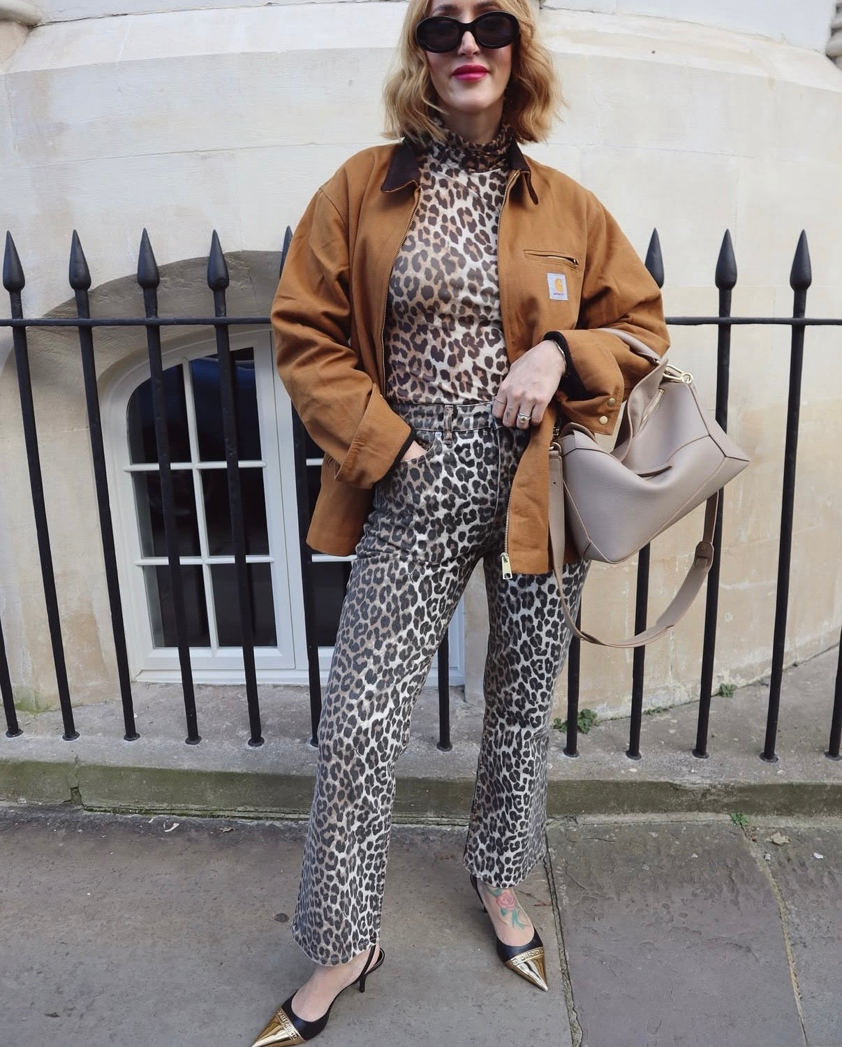 Leopard print straight leg cropped jeans