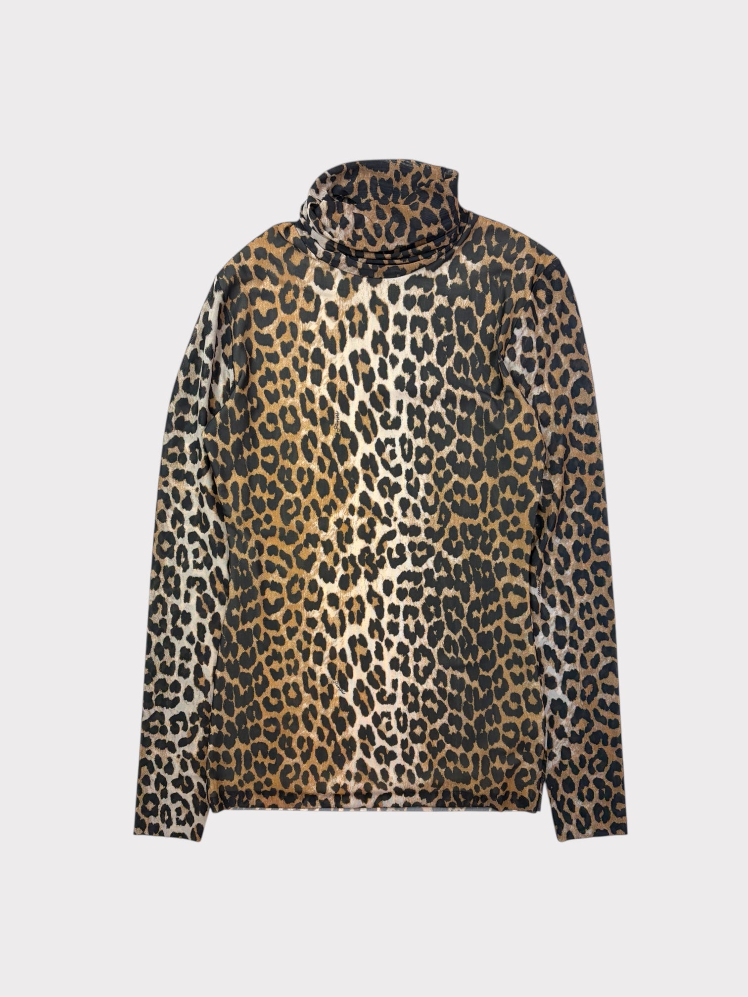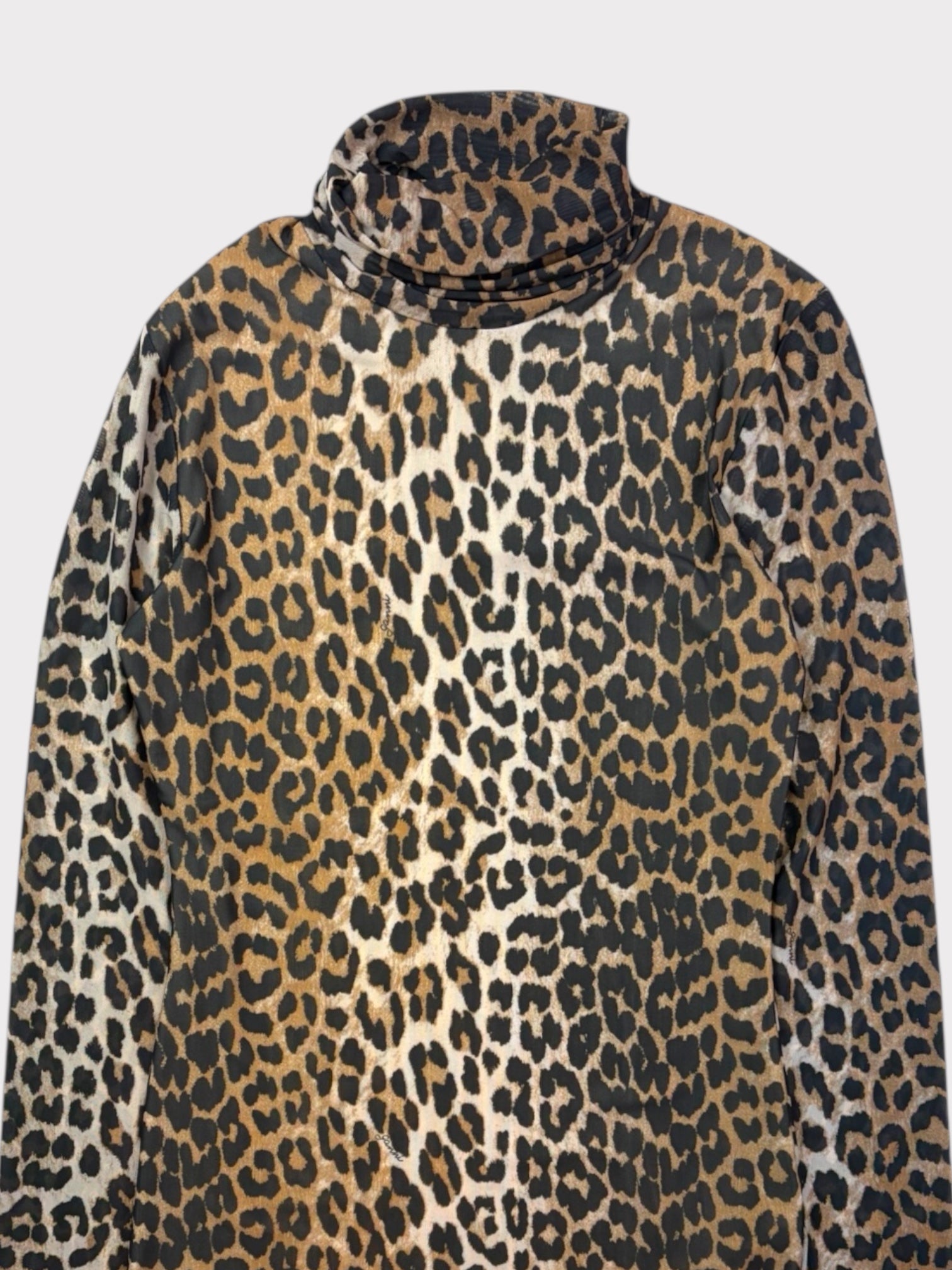 Long sleeved stretchy mesh leopard print top with high neck