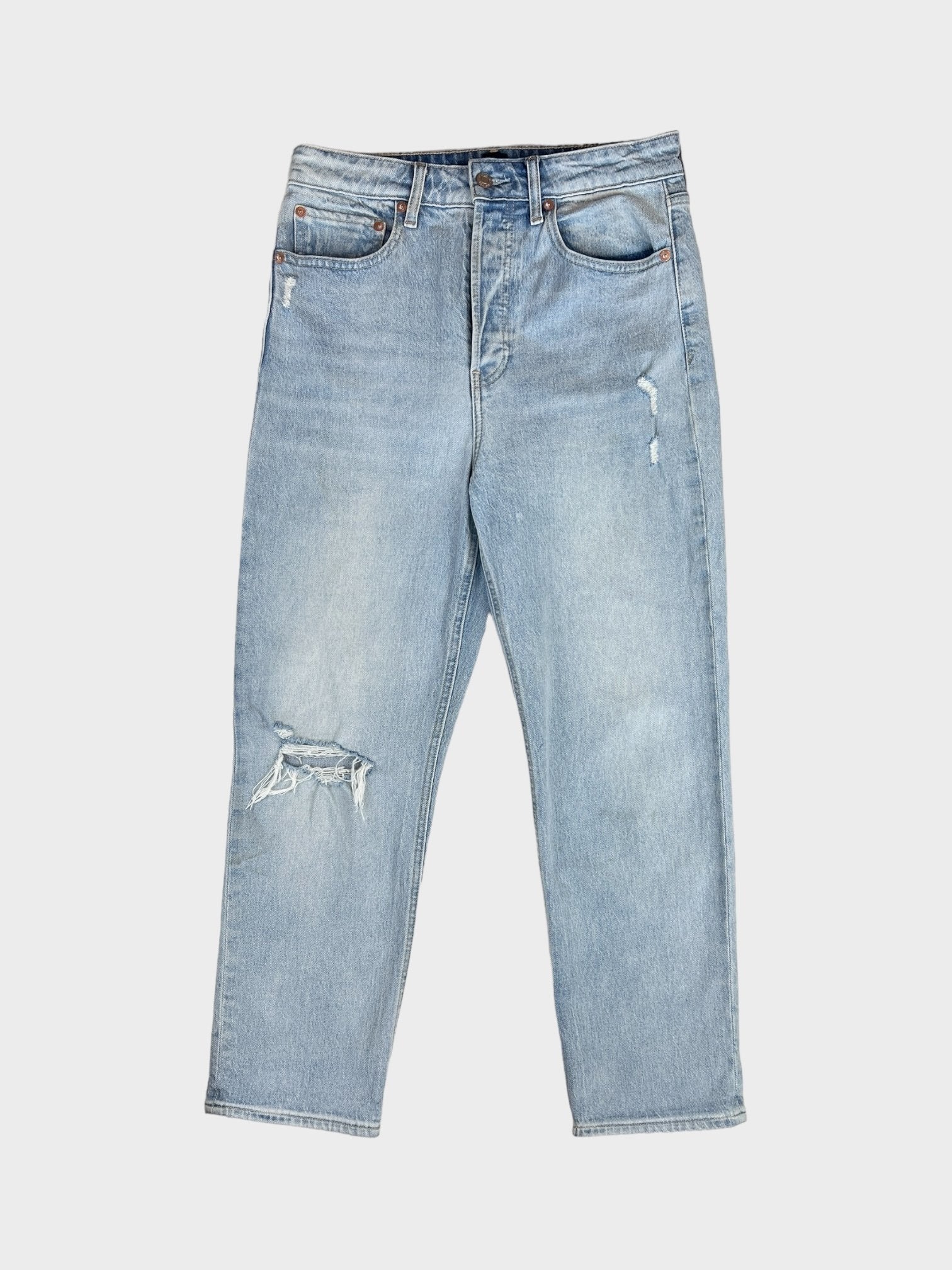 Light wash jeans with rip knee detail
