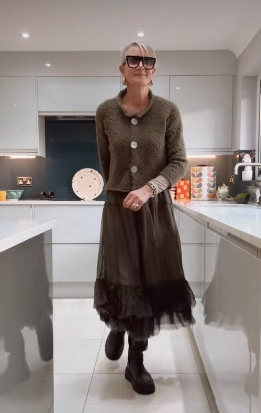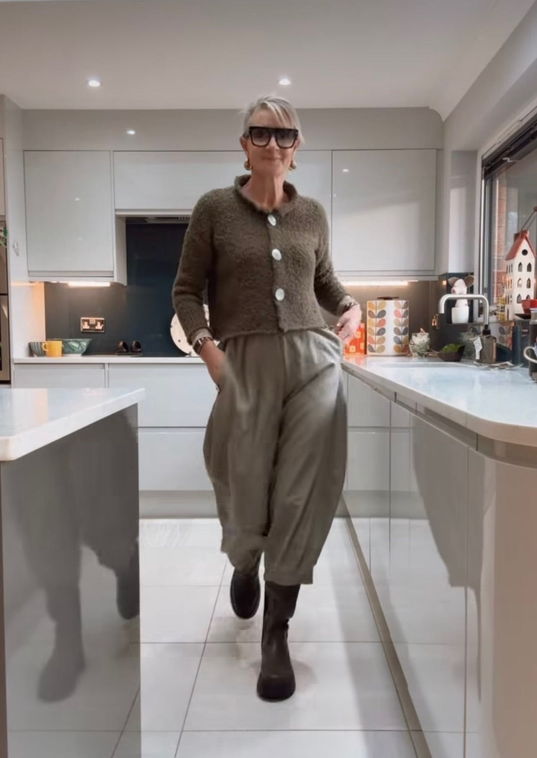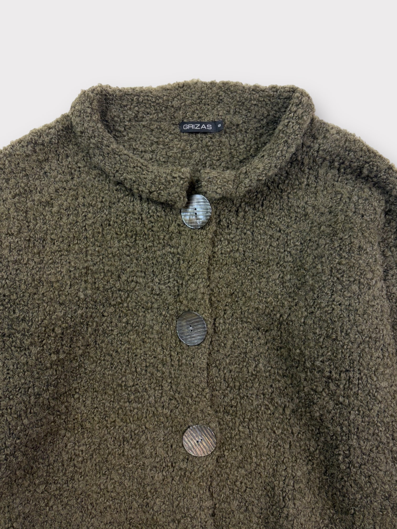 Textured boxy fit long sleeve cardigan with 3 oversized buttons
