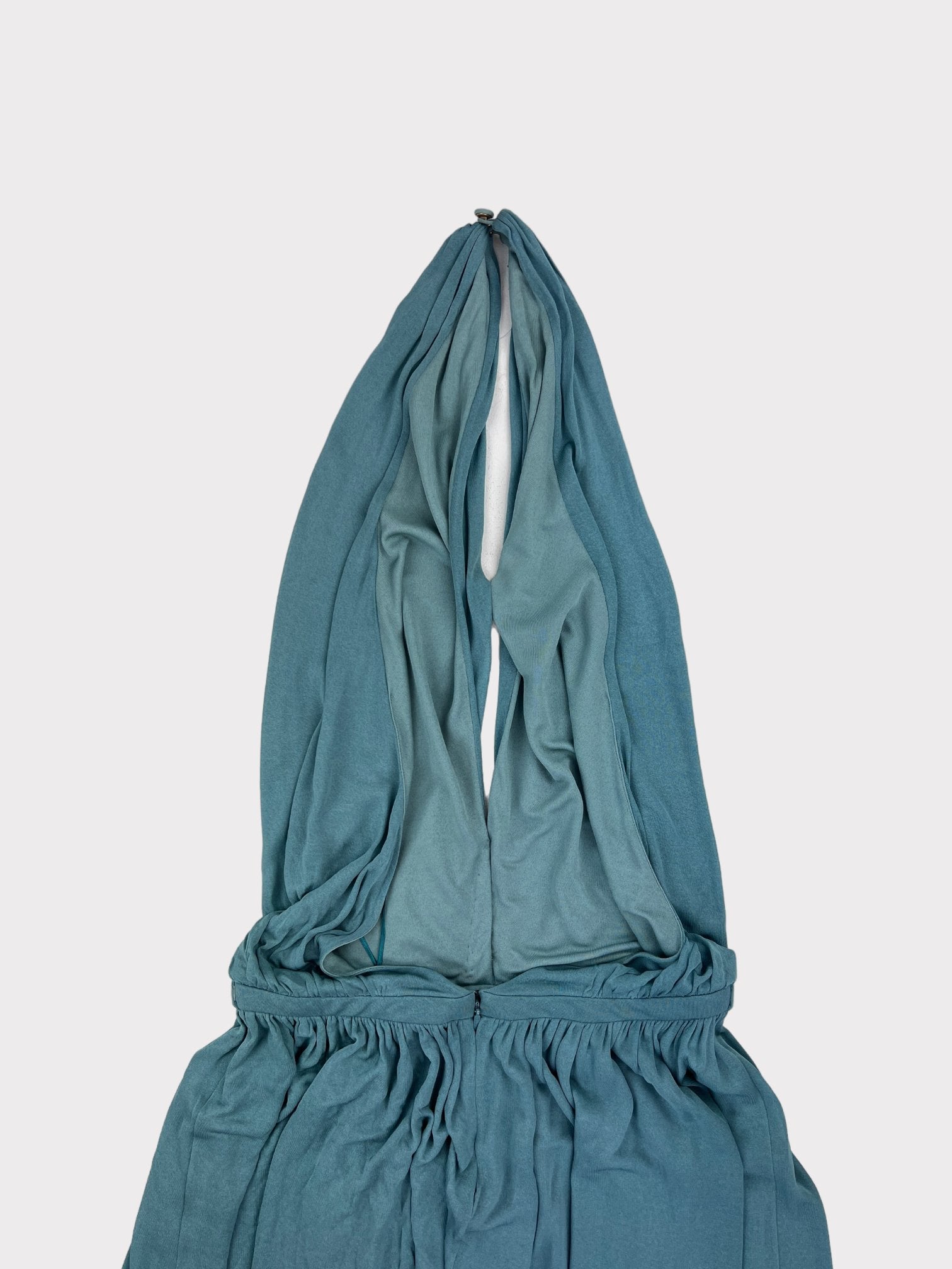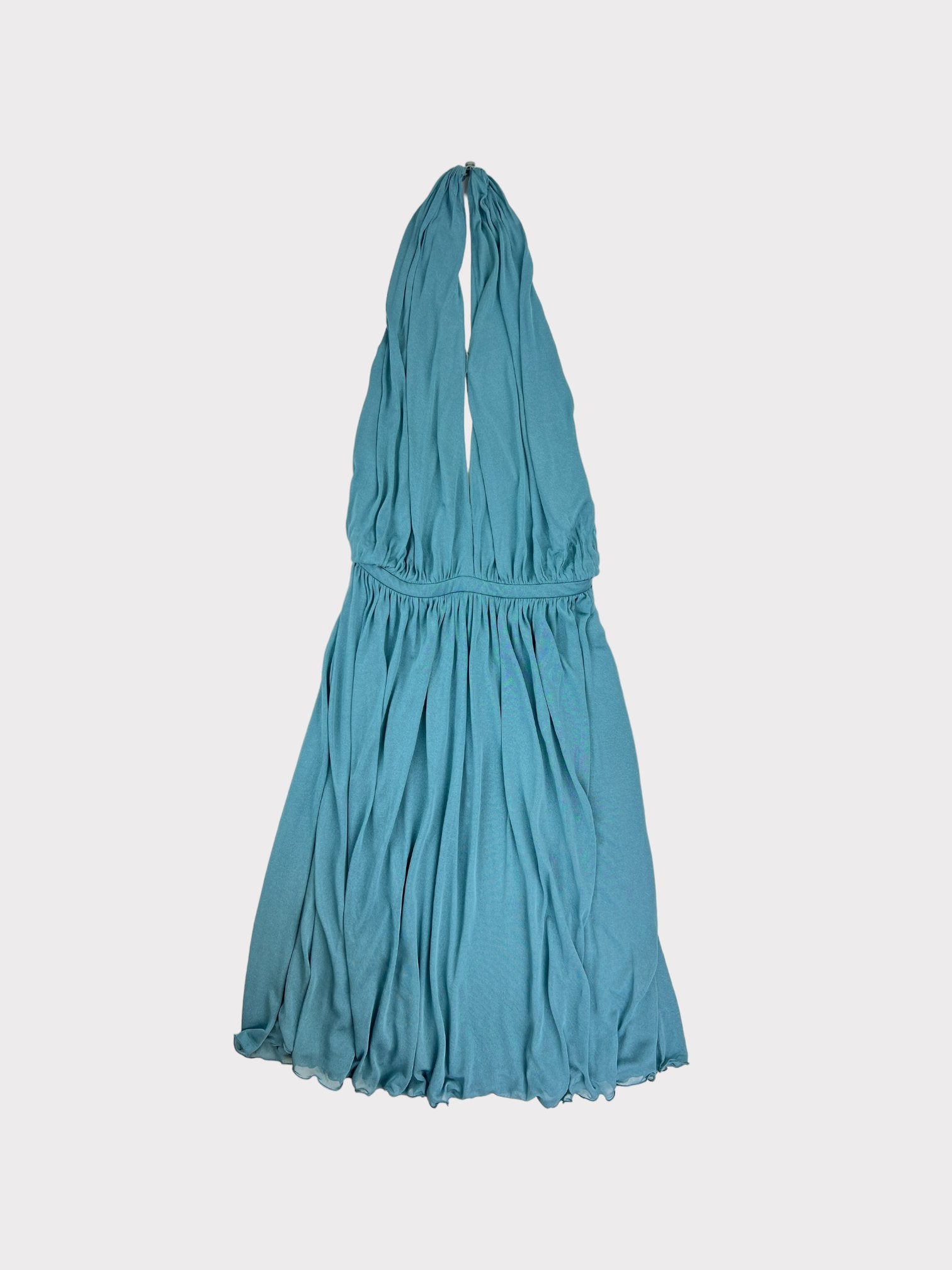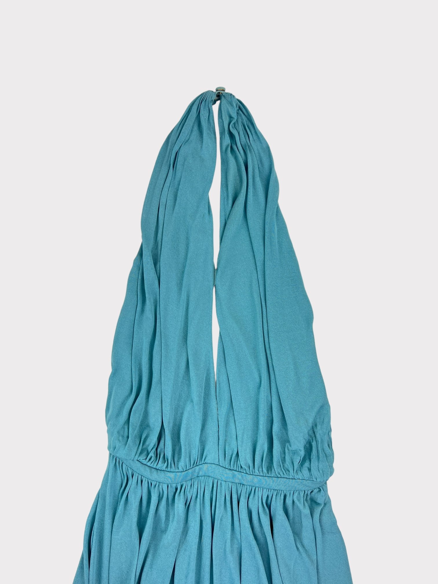 Teal blue halter neck midi dress with slight cut out on chest