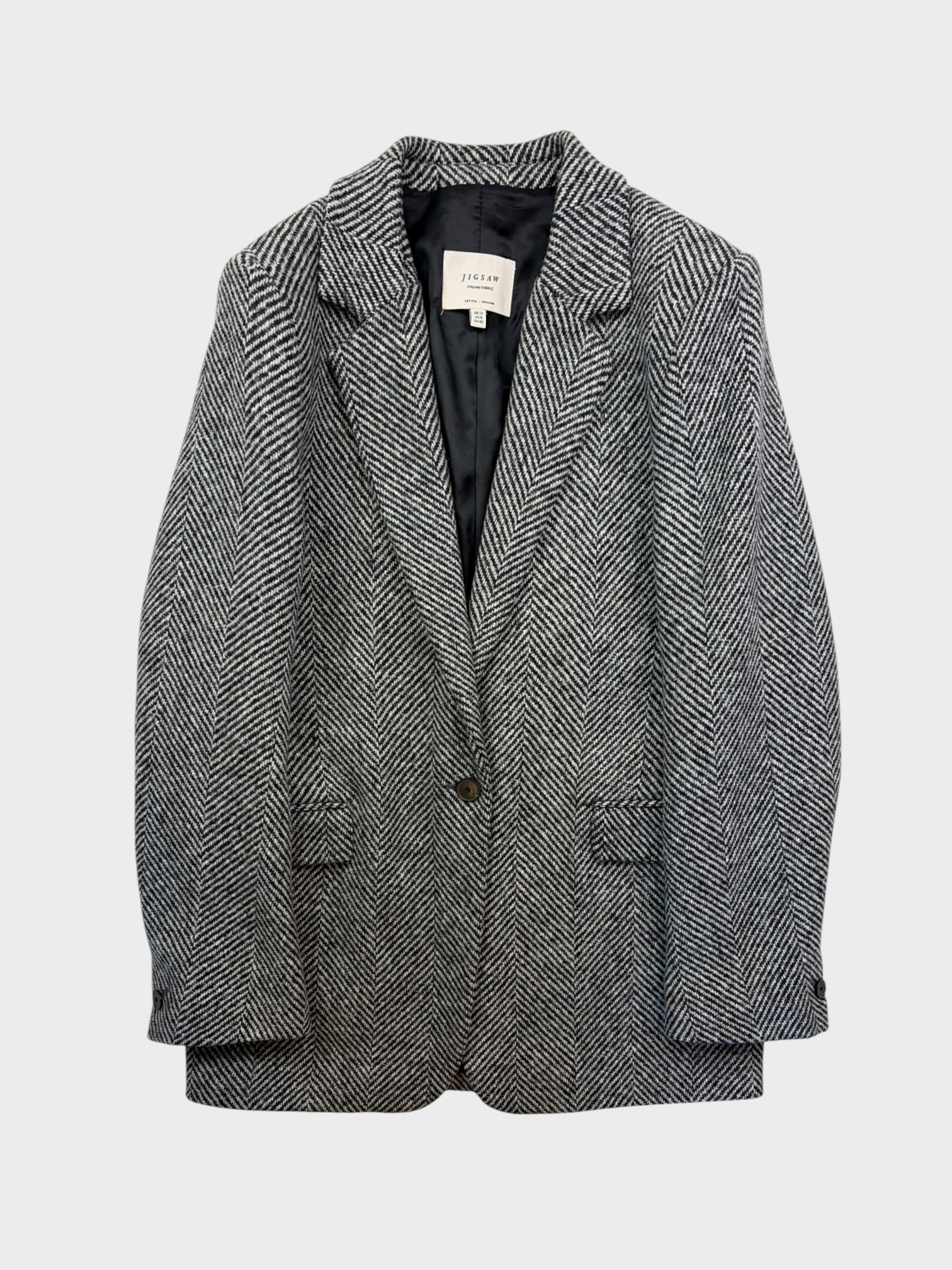 Black and white herringbone single breasted blazer