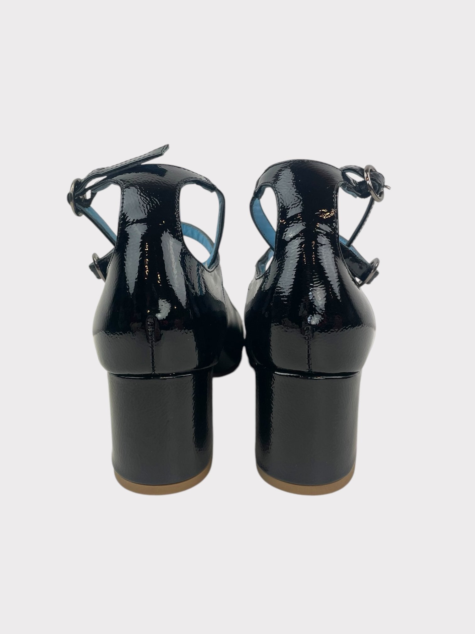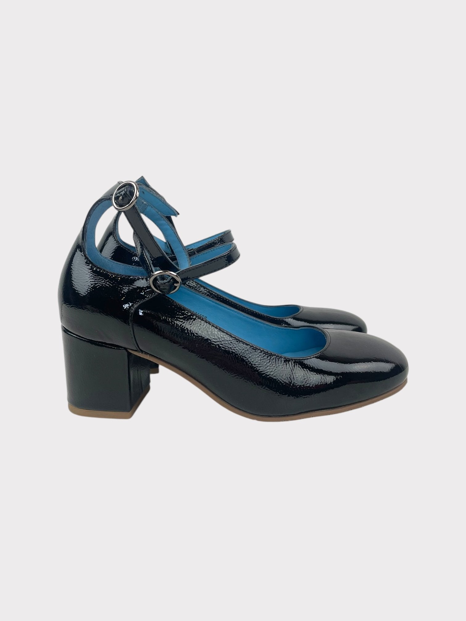 Black patent Mary Jane shoes with double ankle strap detail