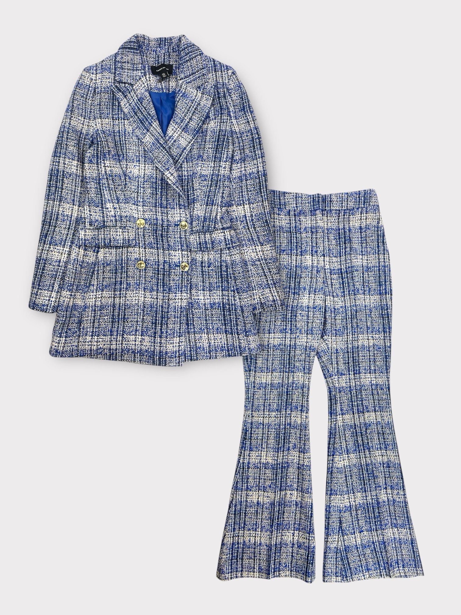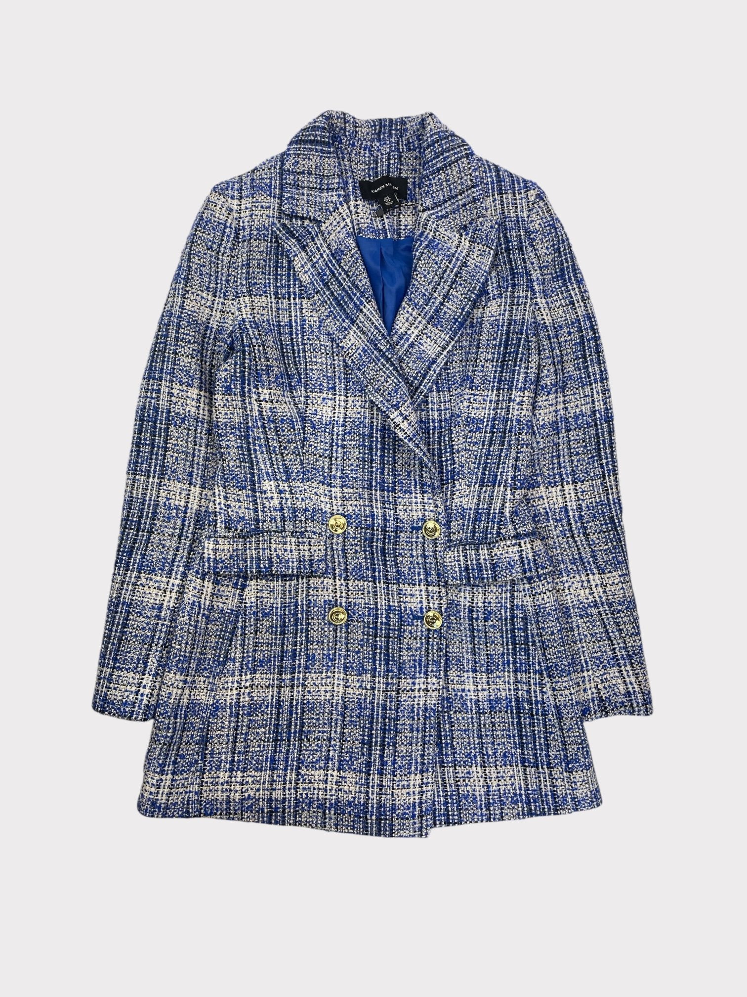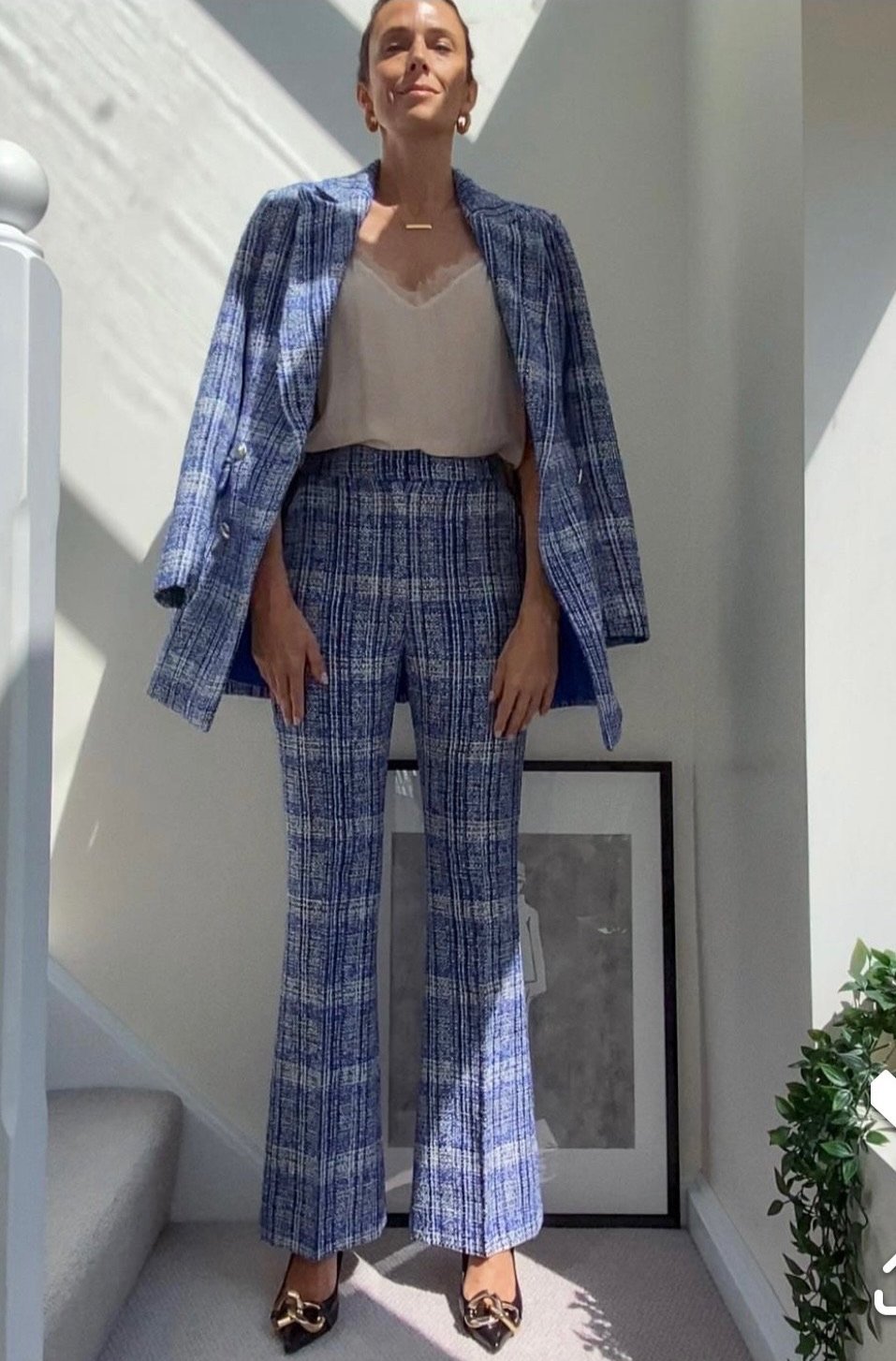 Blue Tweed longline blazer and trouser co-ord