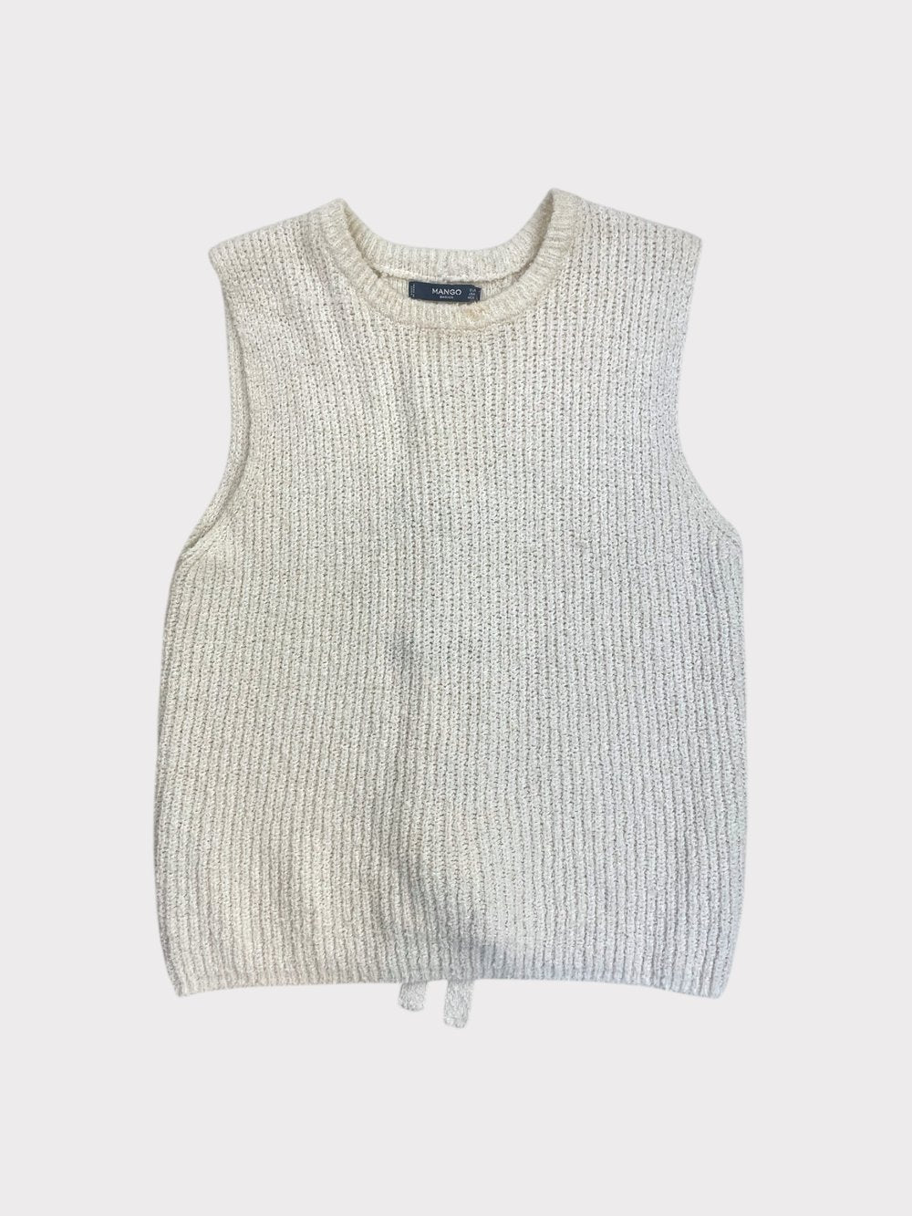Cream knitted rib sleeveless top with open back and lace-up detail with multicolored eyelets