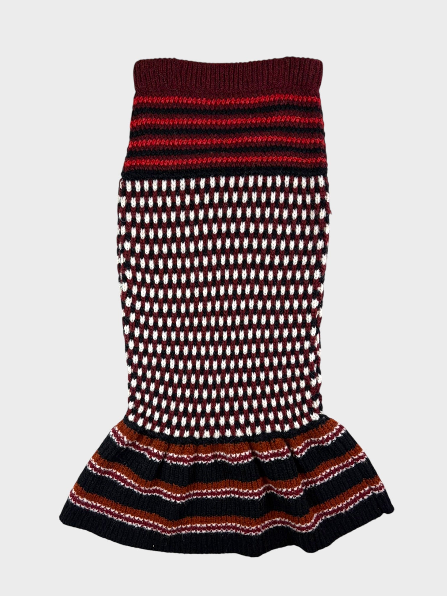 Patterned chunky wool blend knitted maxi skirt with mermaid hemline detail