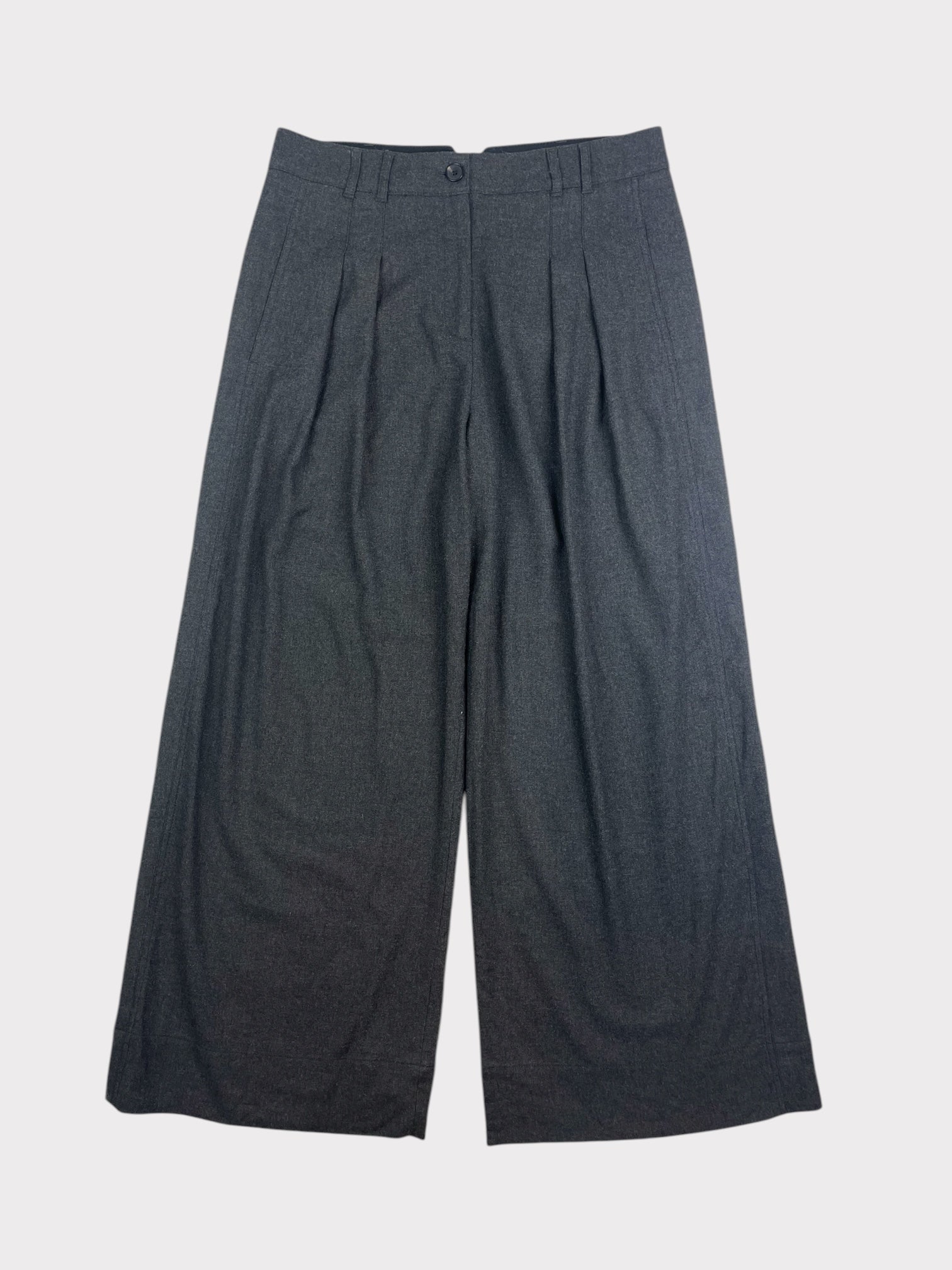 Dark grey wool blend wide leg trousers with high waist with pleat details
