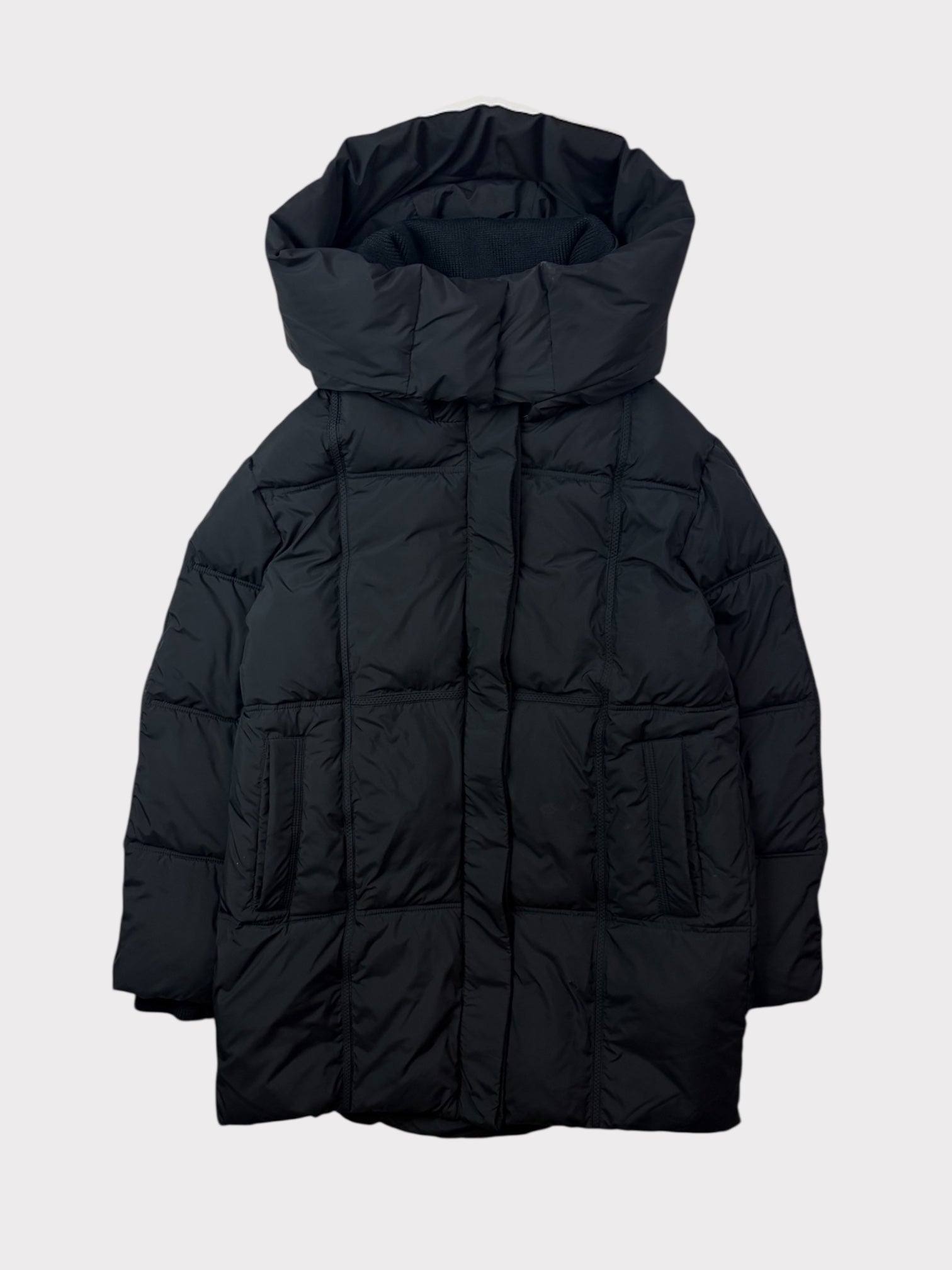 Black padded jacket with braiding detail and contrasting cream zip