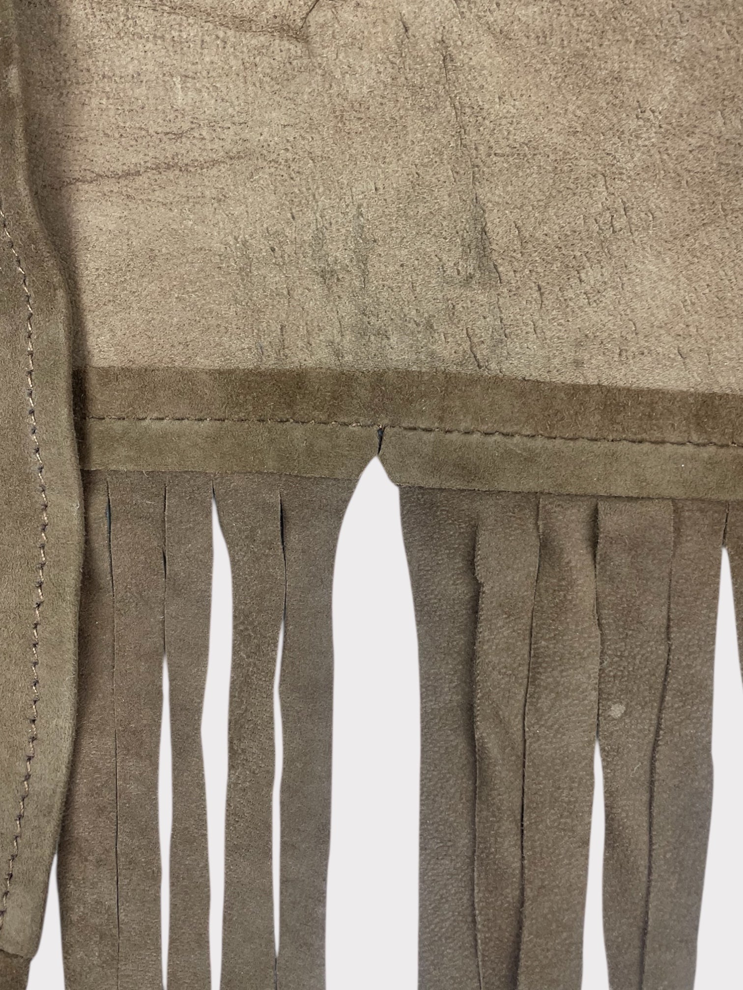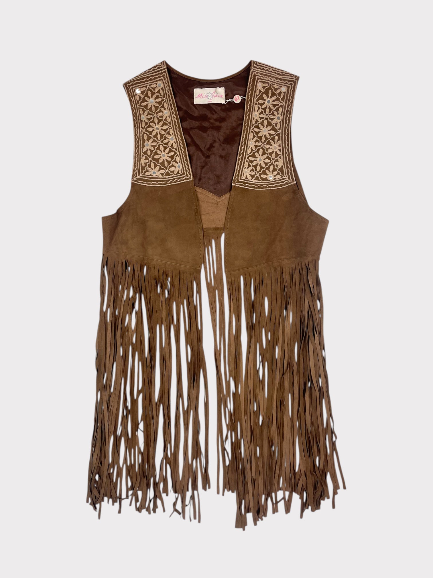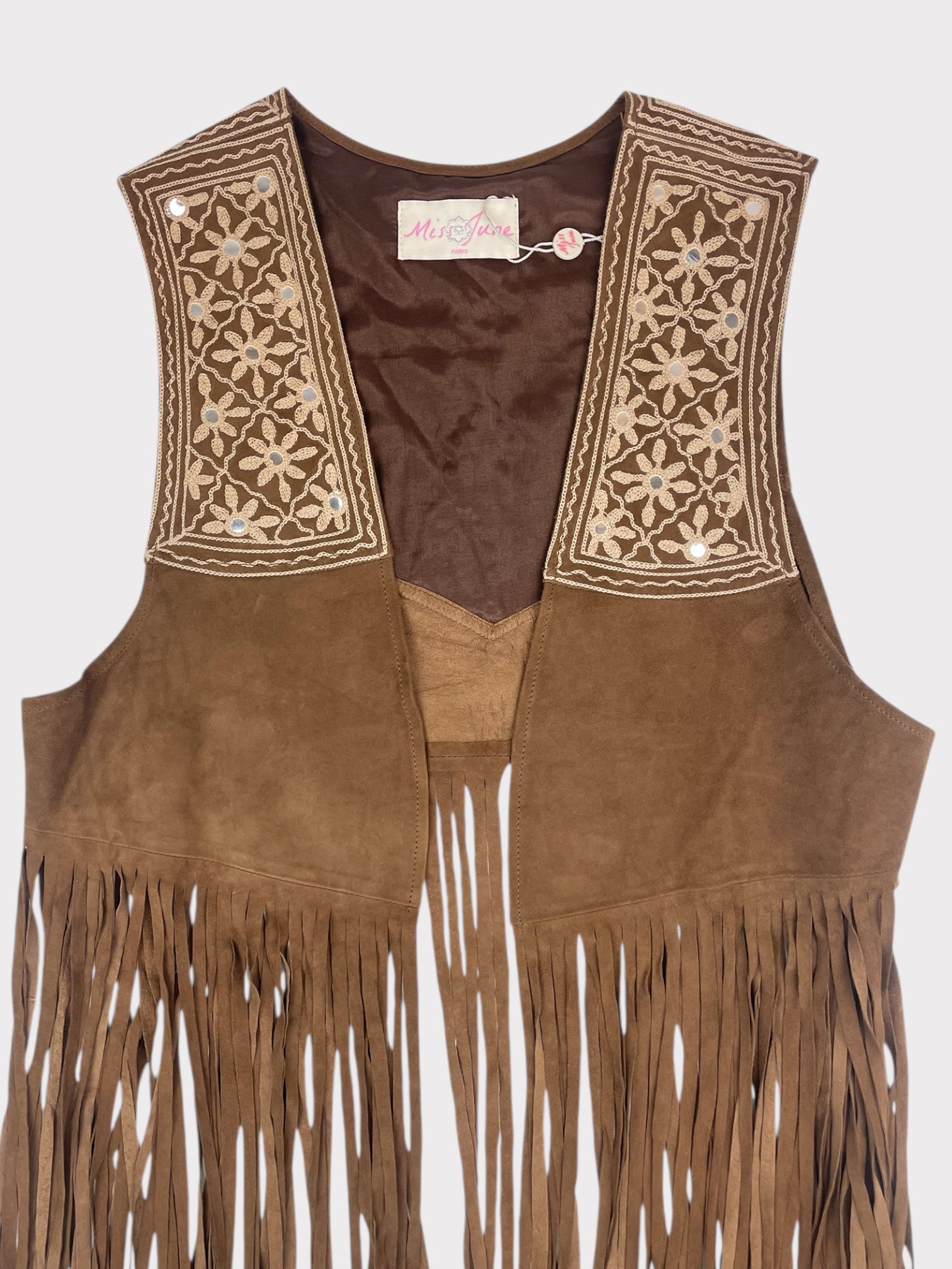 Brown suede fringed waistcoat with embroidery and mirror detail