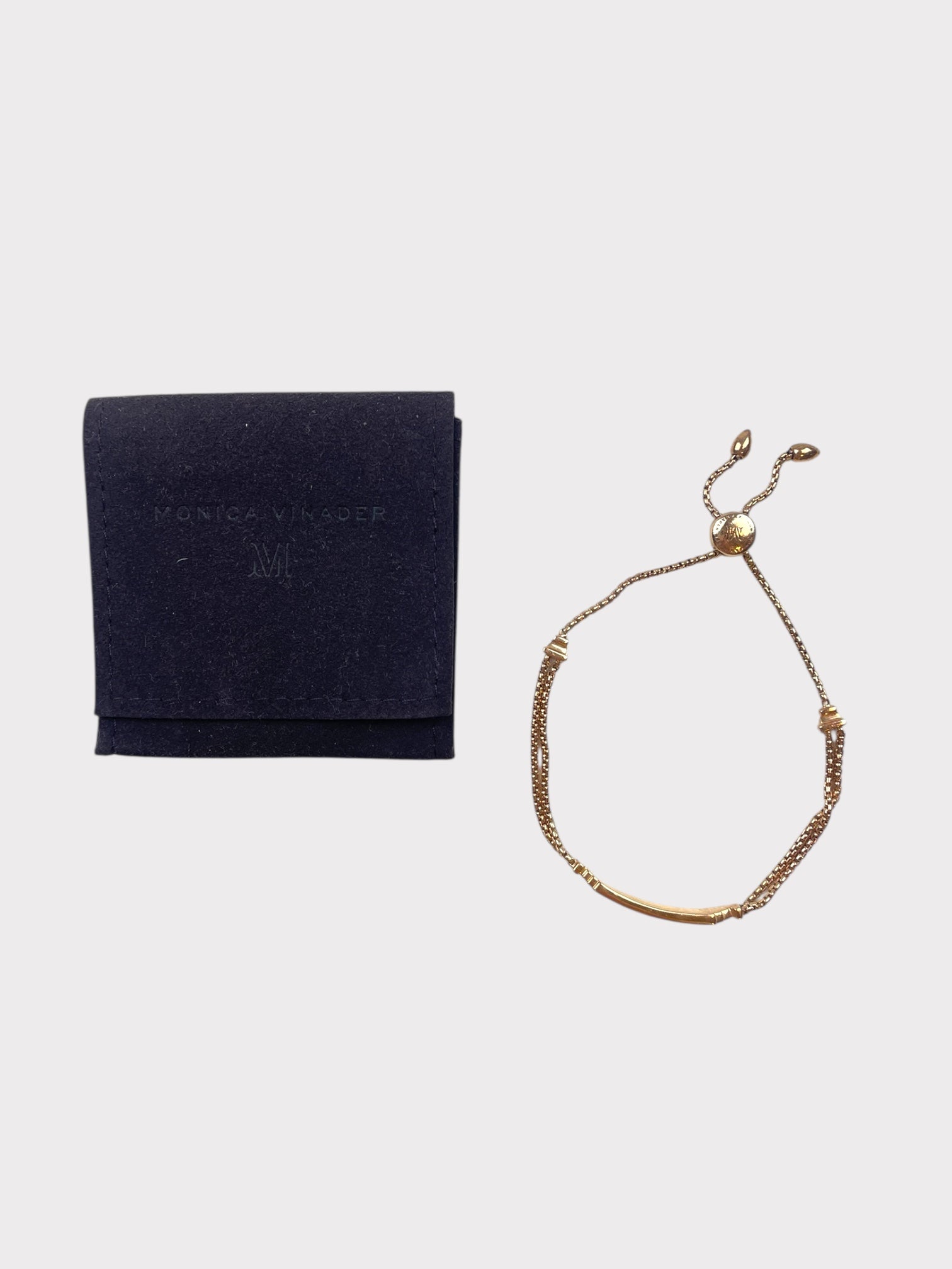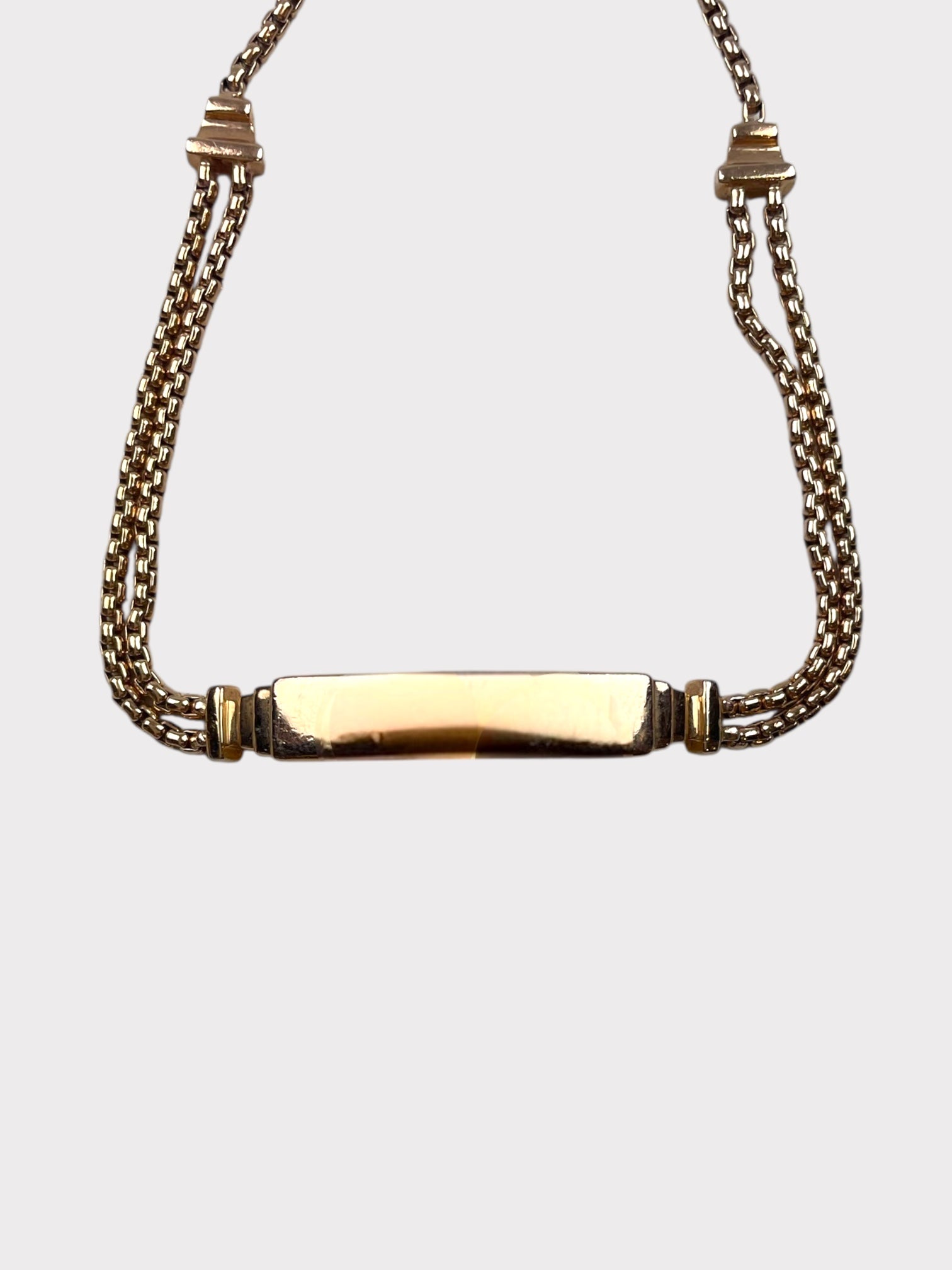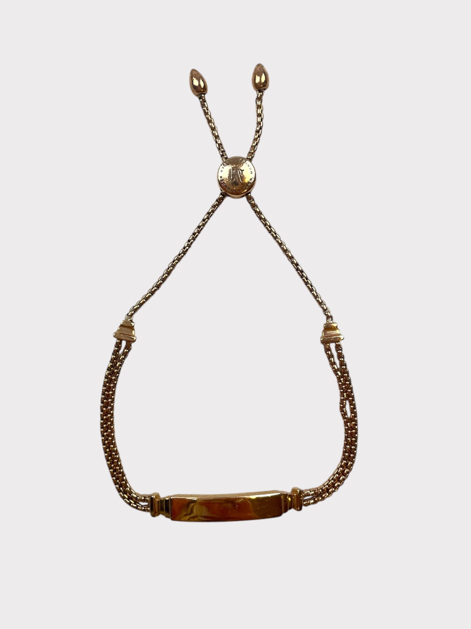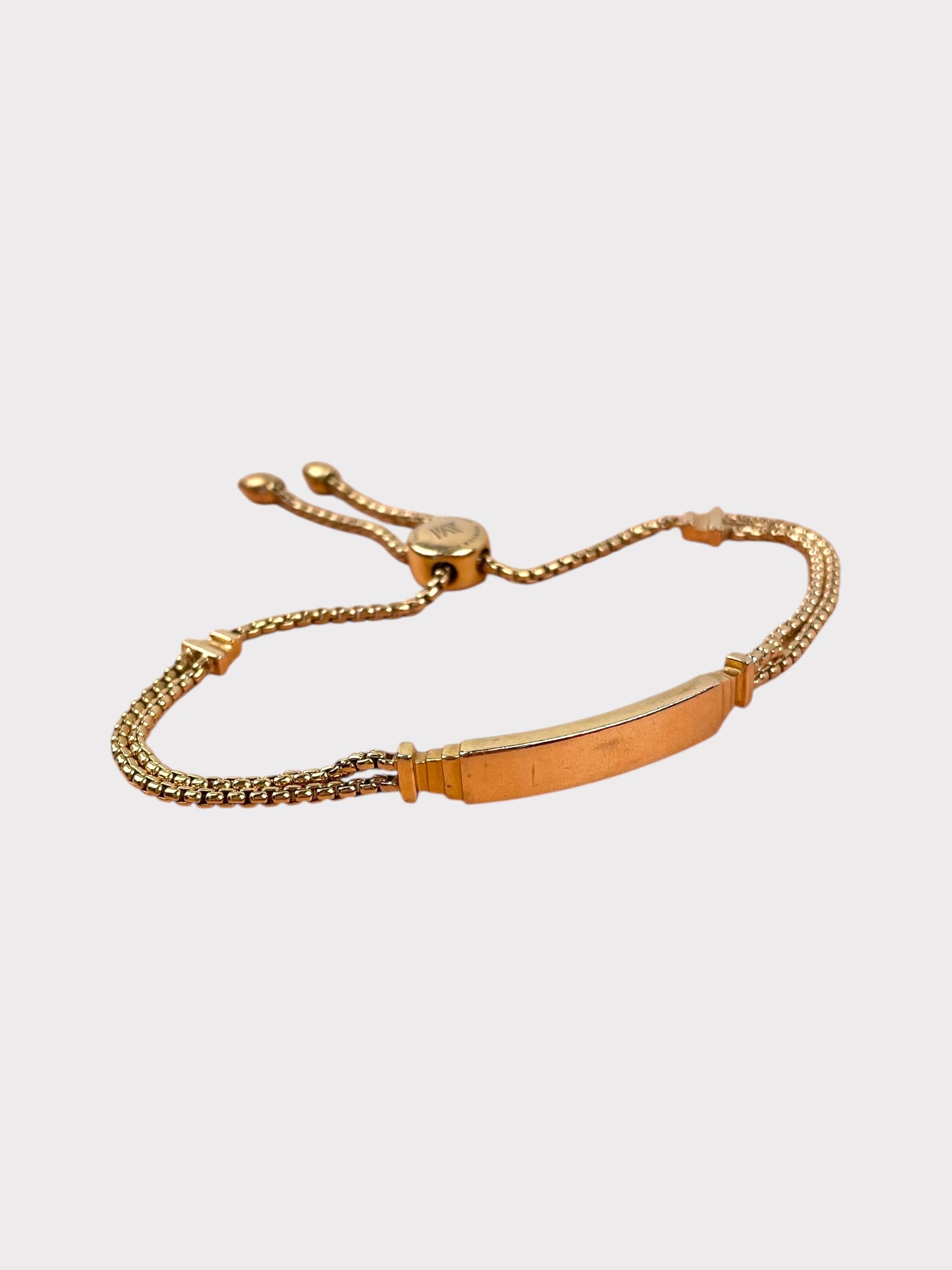 Rose gold tone adjustable bracelet with double chain and bar detail