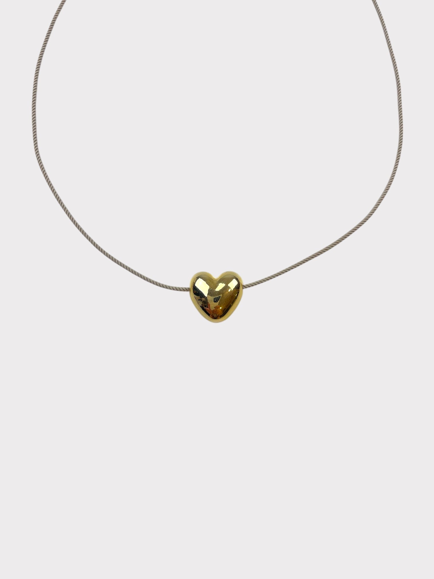 Gold heart on adjustable thin cord rope necklace