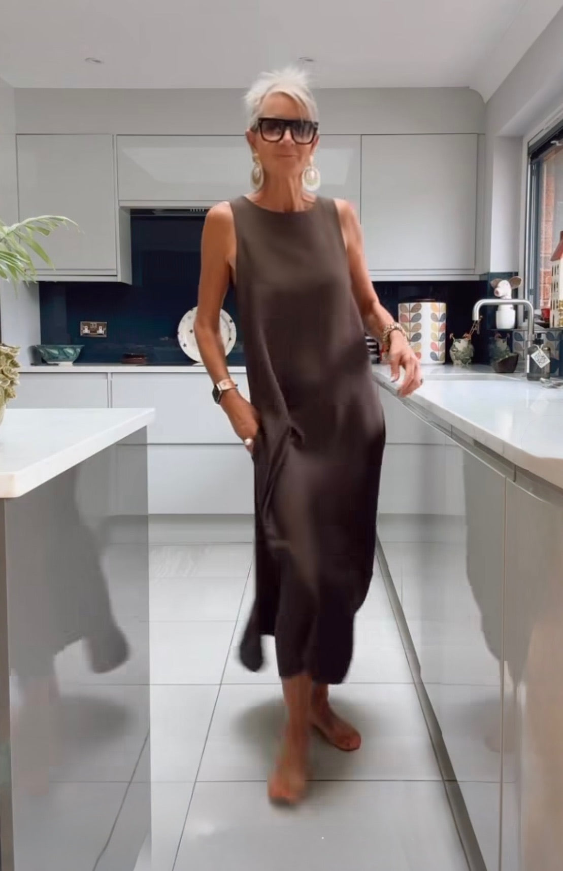 Brown sleeveless fit and flare maxi dress