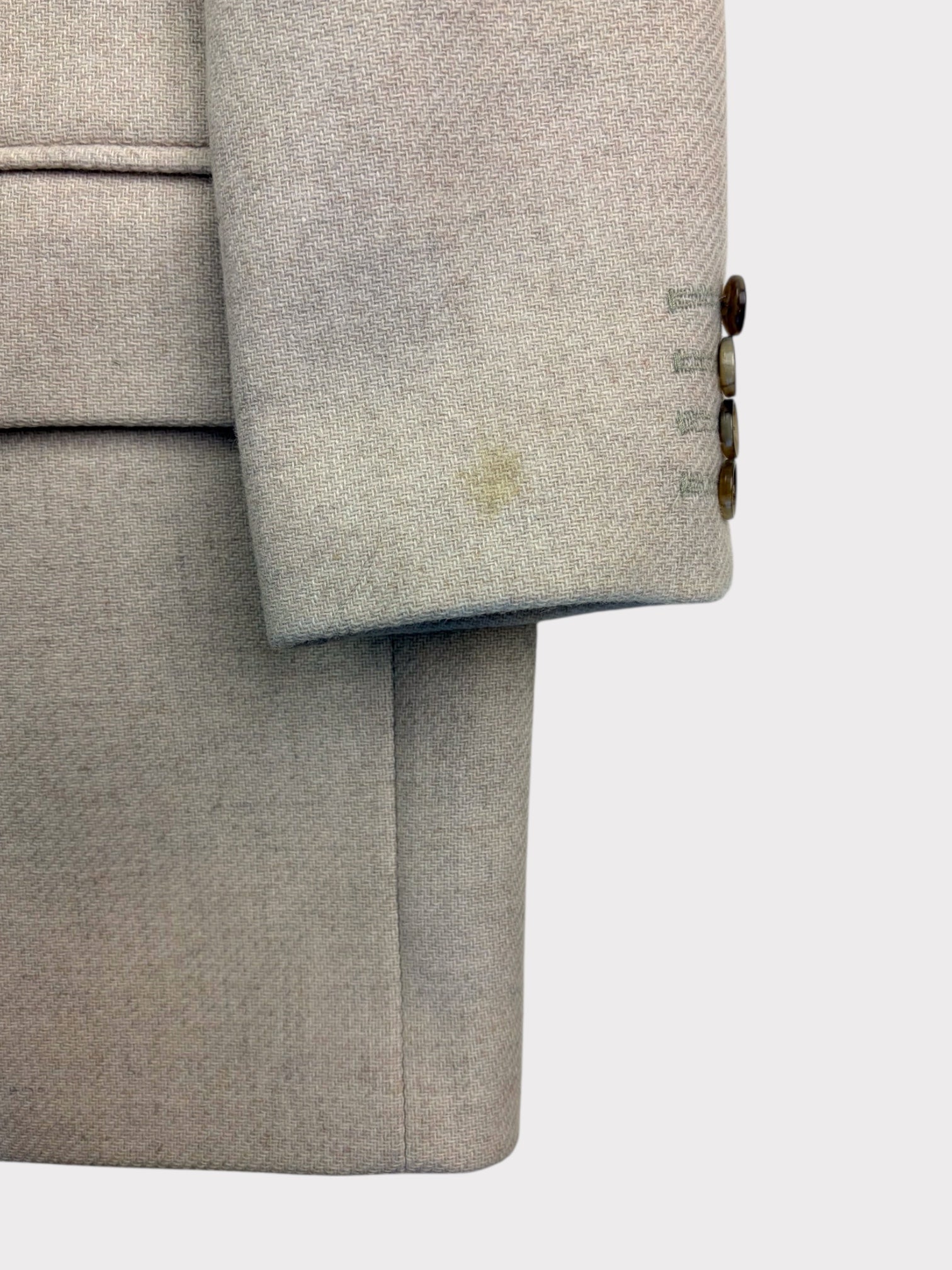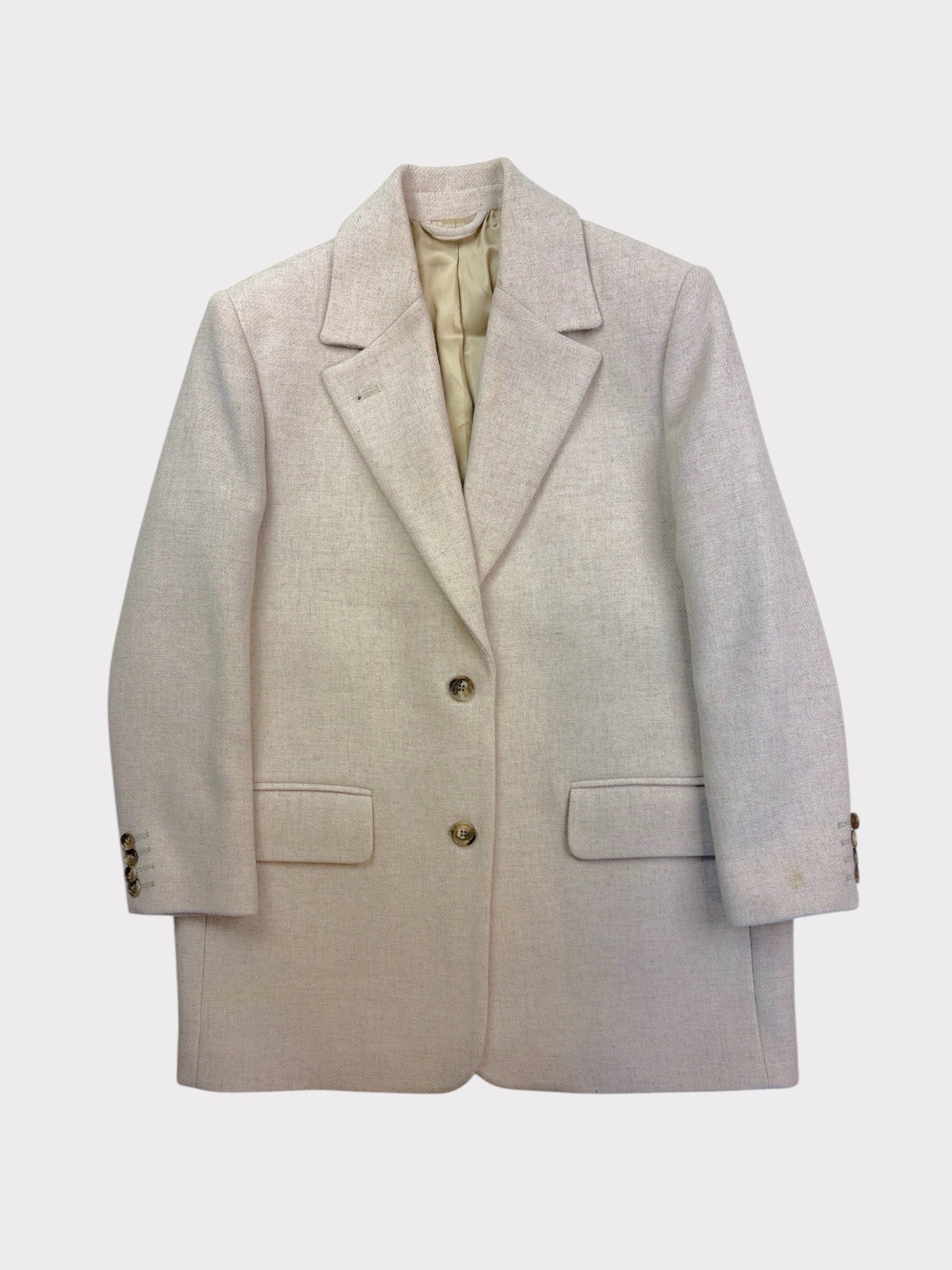 Light beige wool blend single breasted blazer with classic collar and lapels
