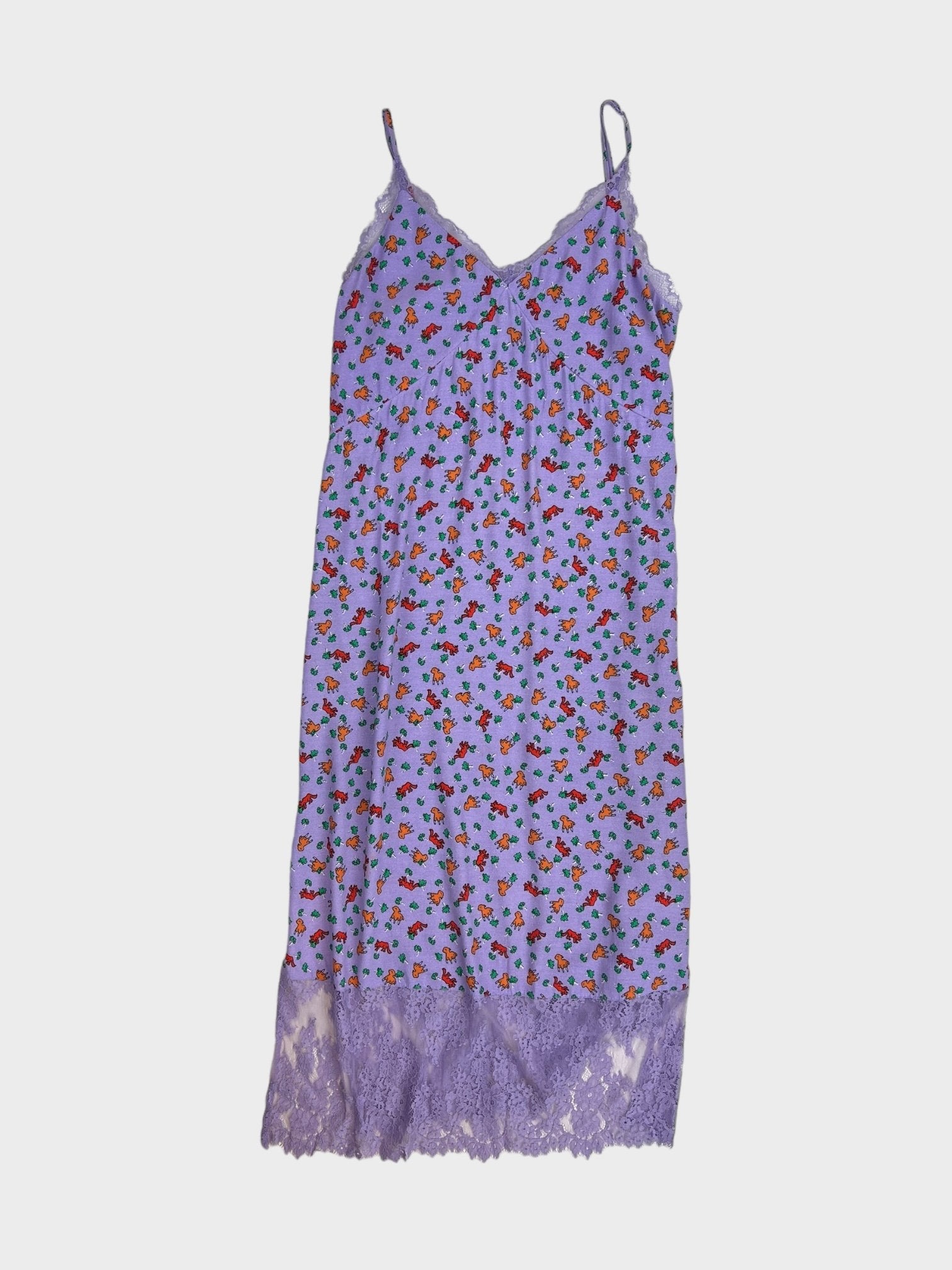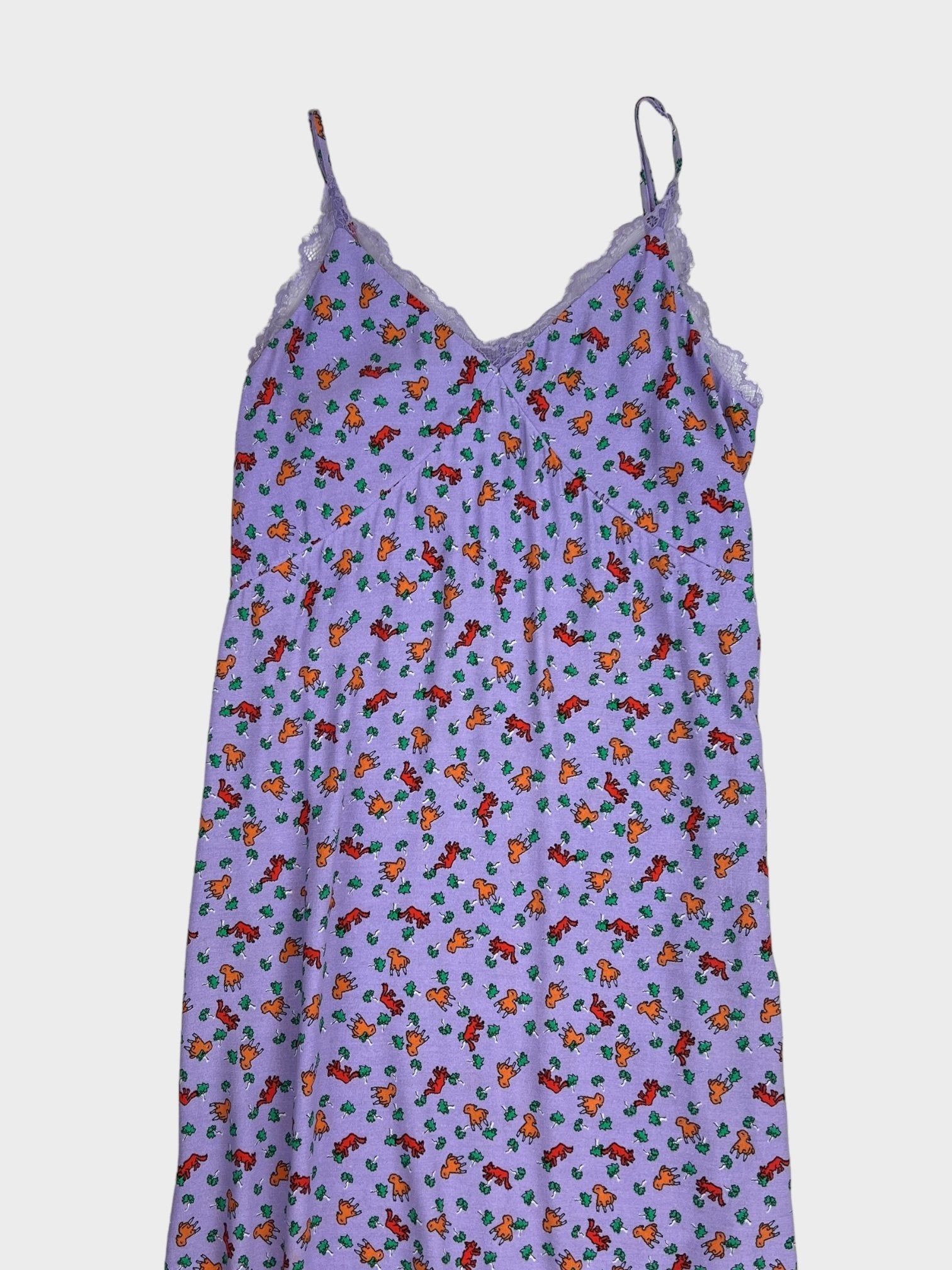 Purple midi slip dress with animal pattern throughout