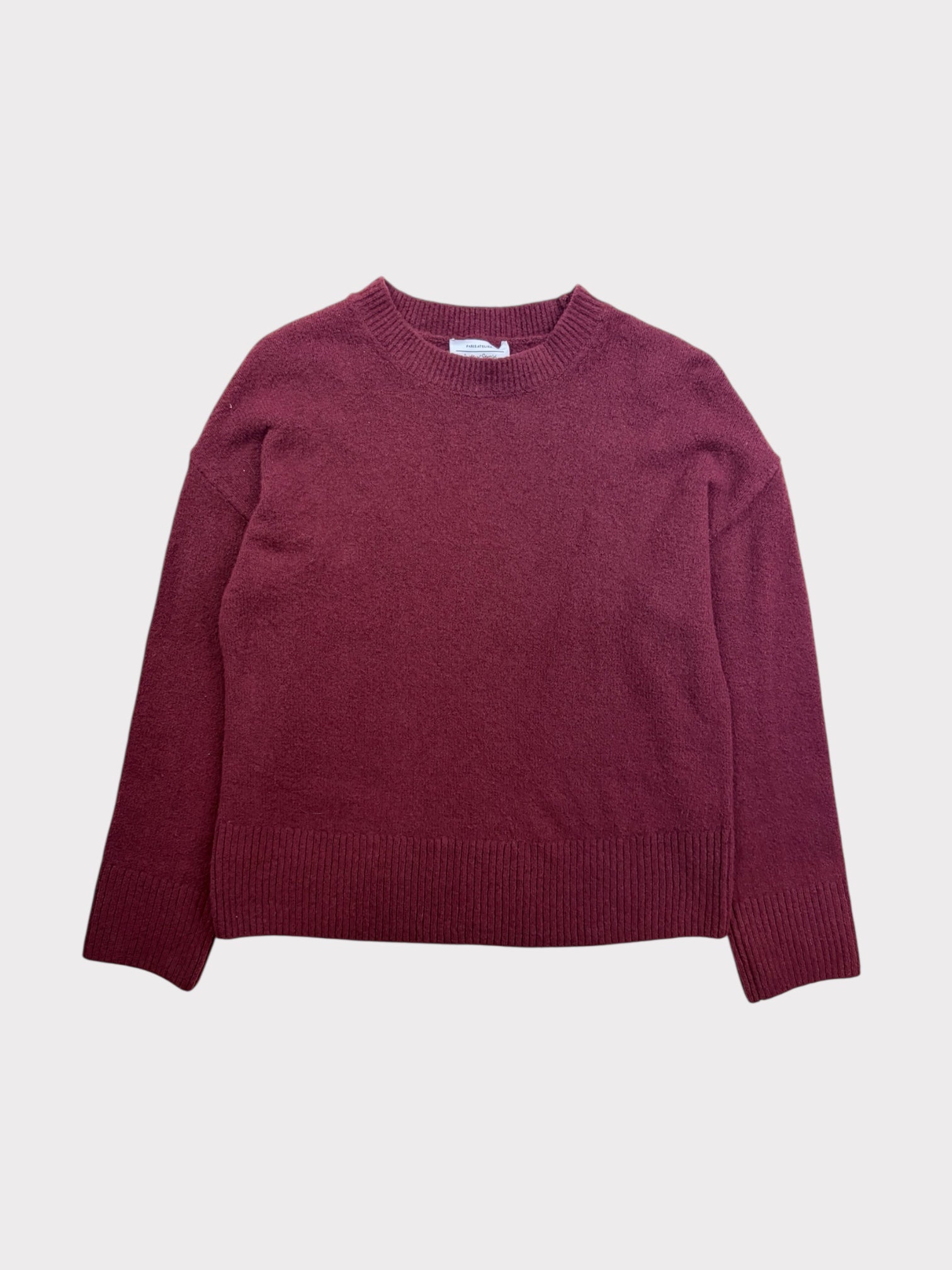 Burgundy knitted long sleeve jumper with rib cuffs and hem.