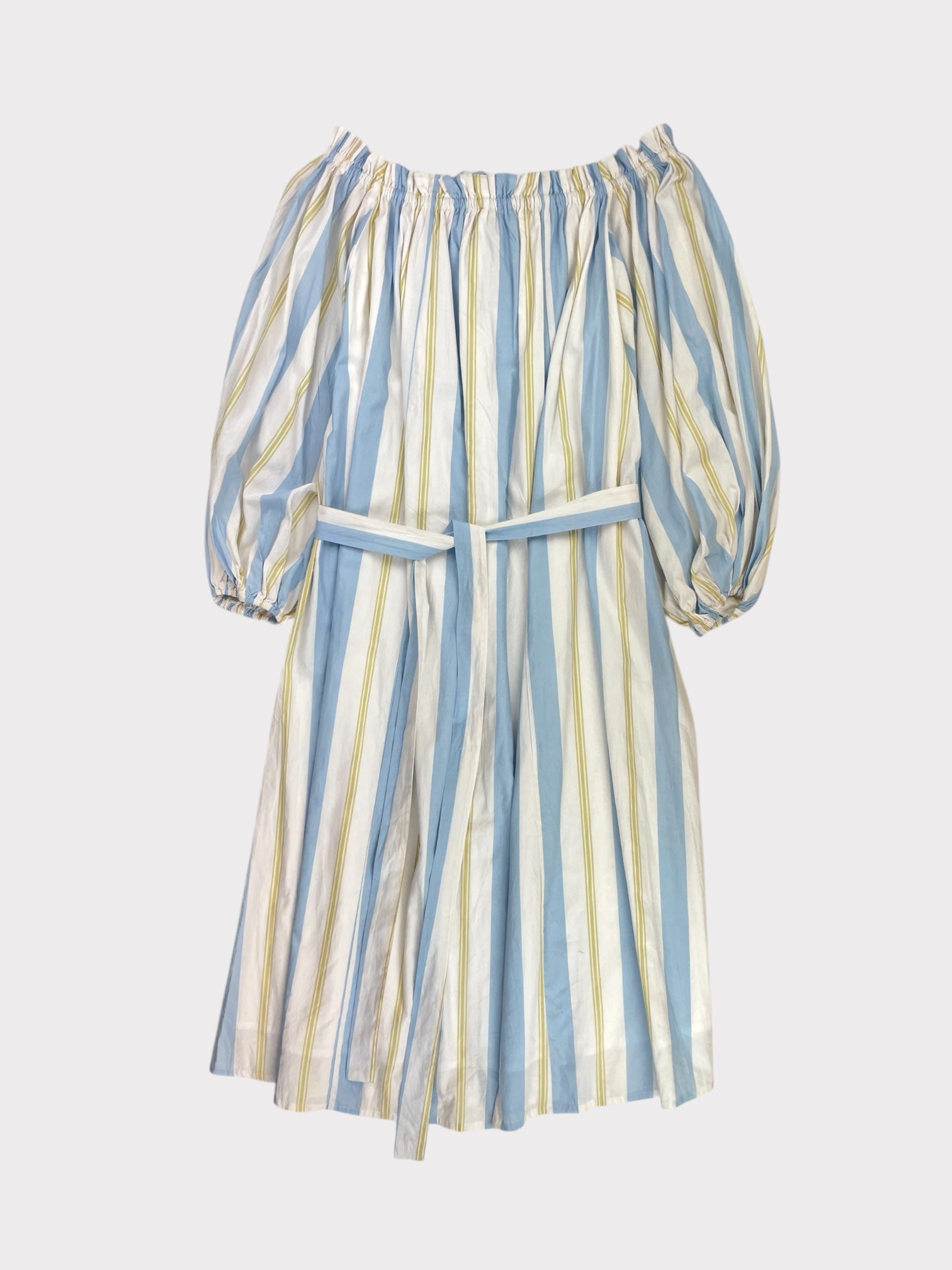 Loose fitting striped off-the-shoulder maxi dress with tie detail at back neck