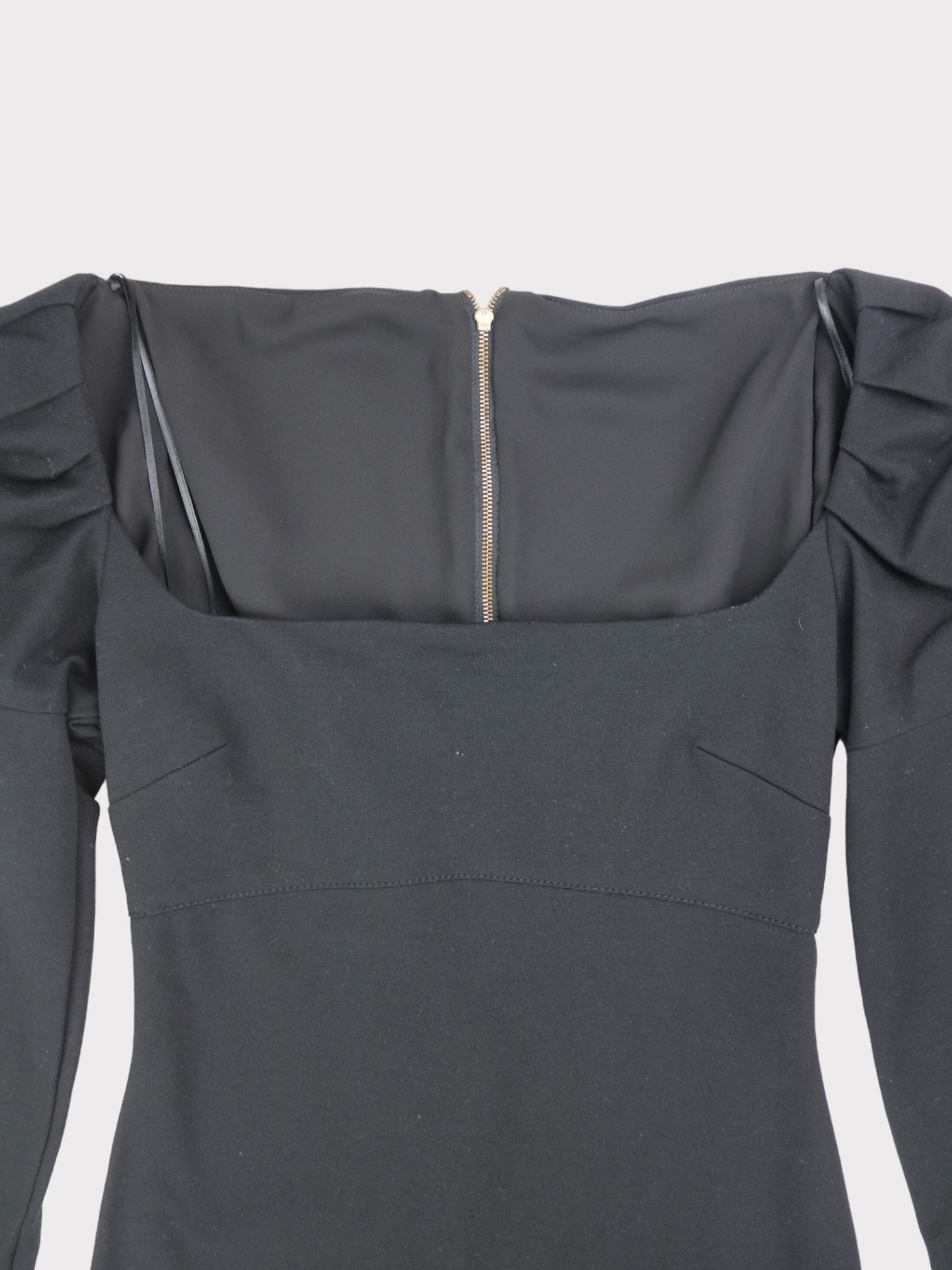 Black square neck mini dress with back zip fastening