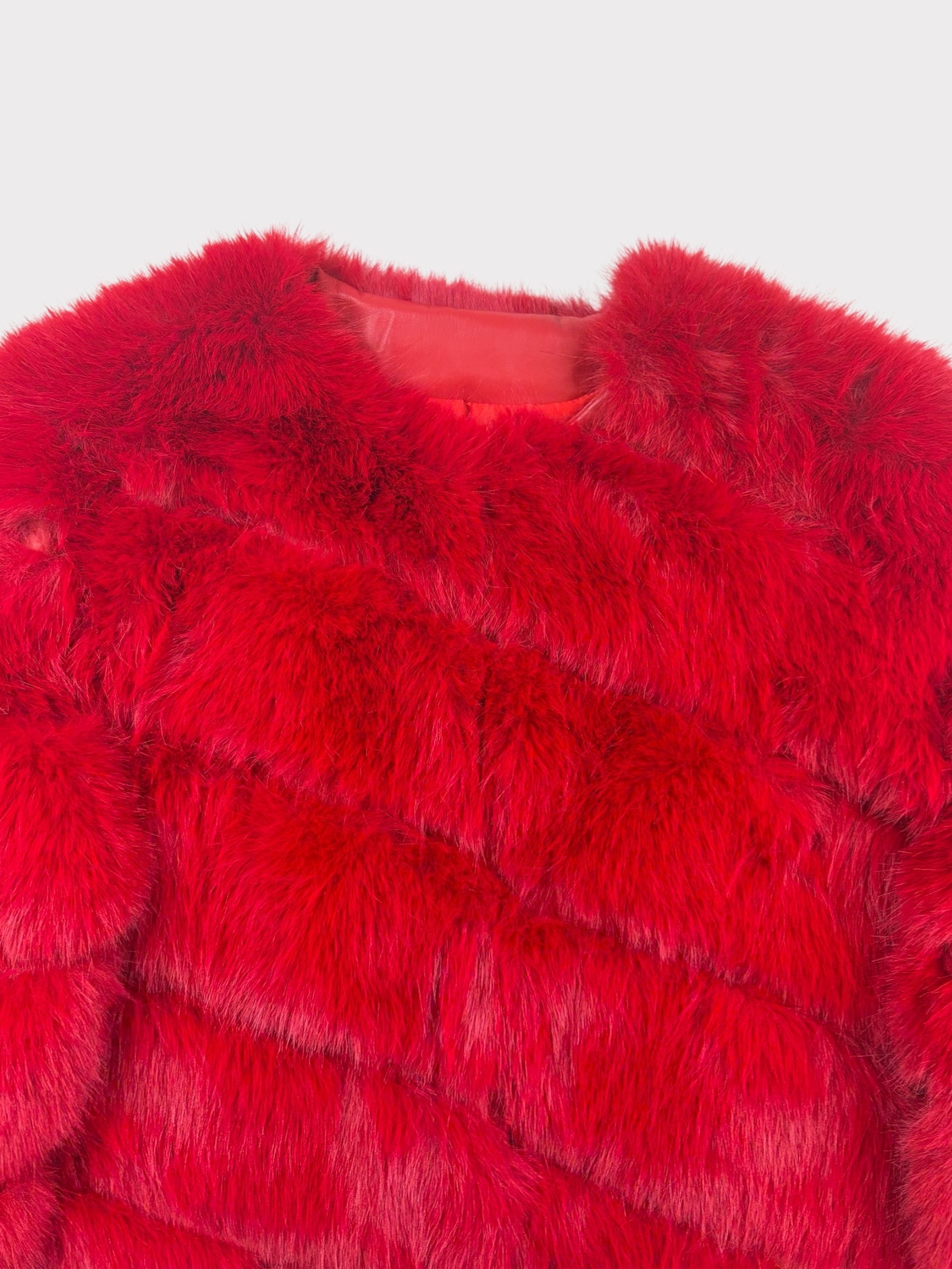 Red Faux Fur Coat, Fits a Size 8/10