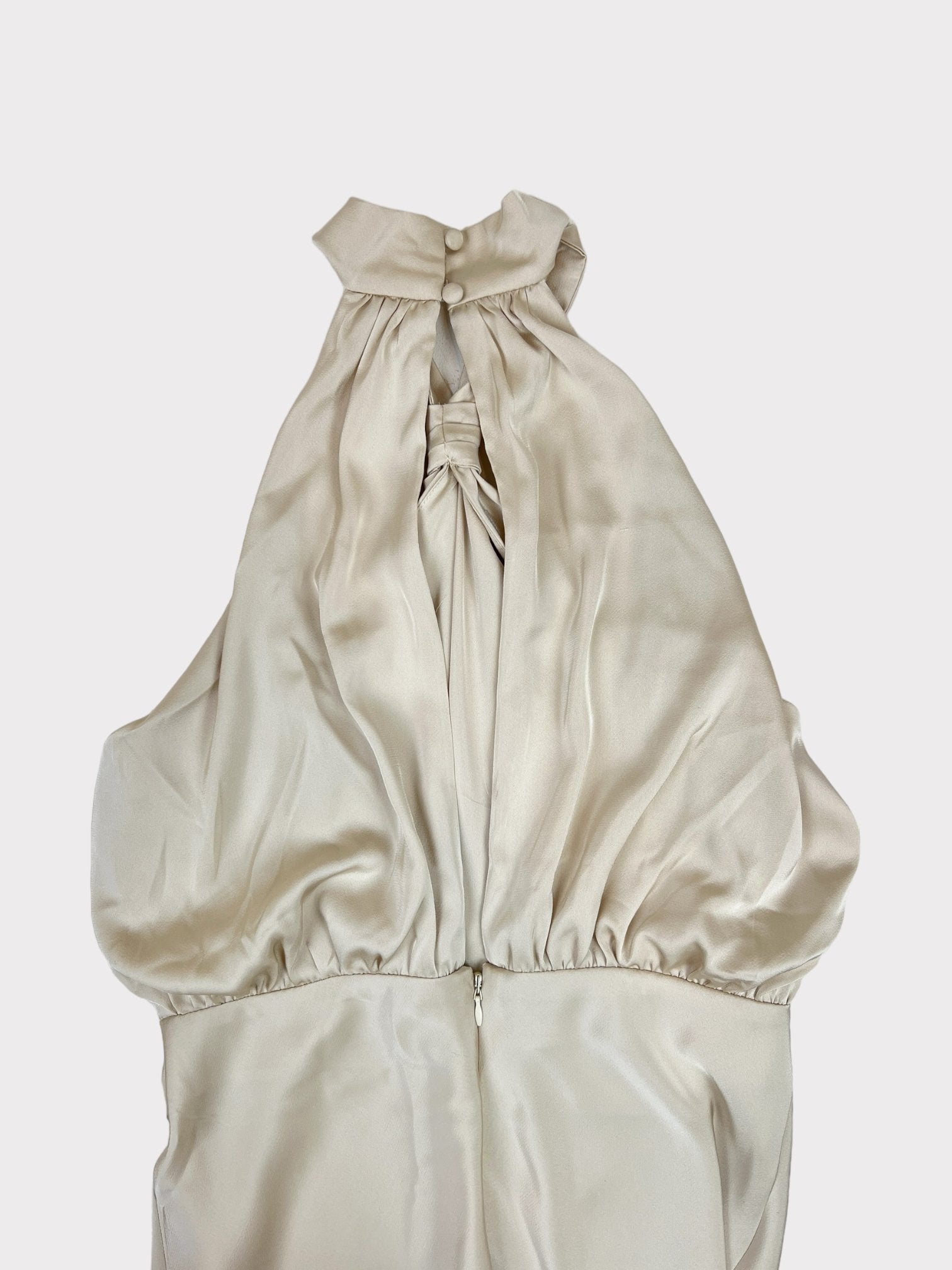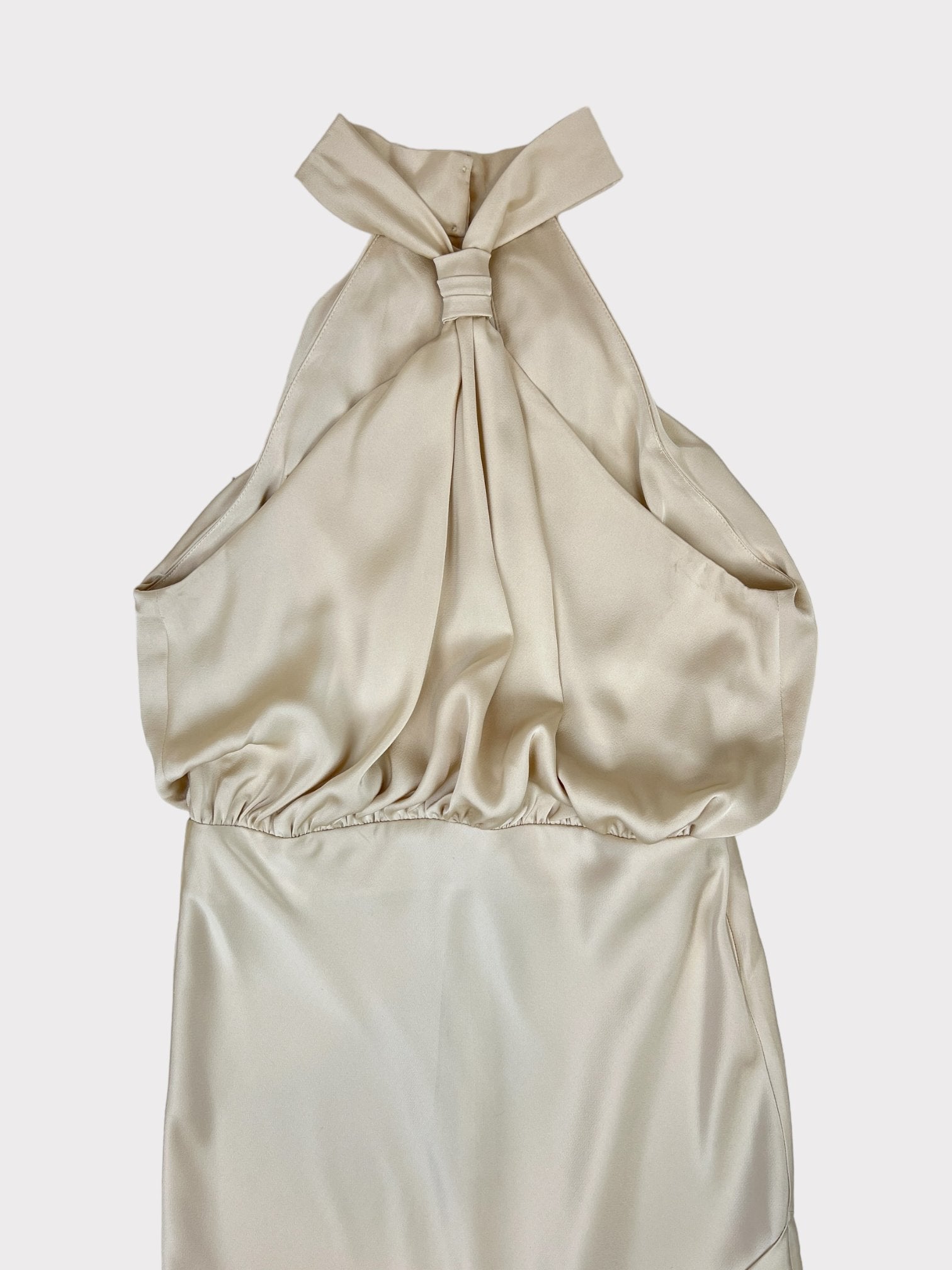 Champagne gold halter neck dress with knot detail