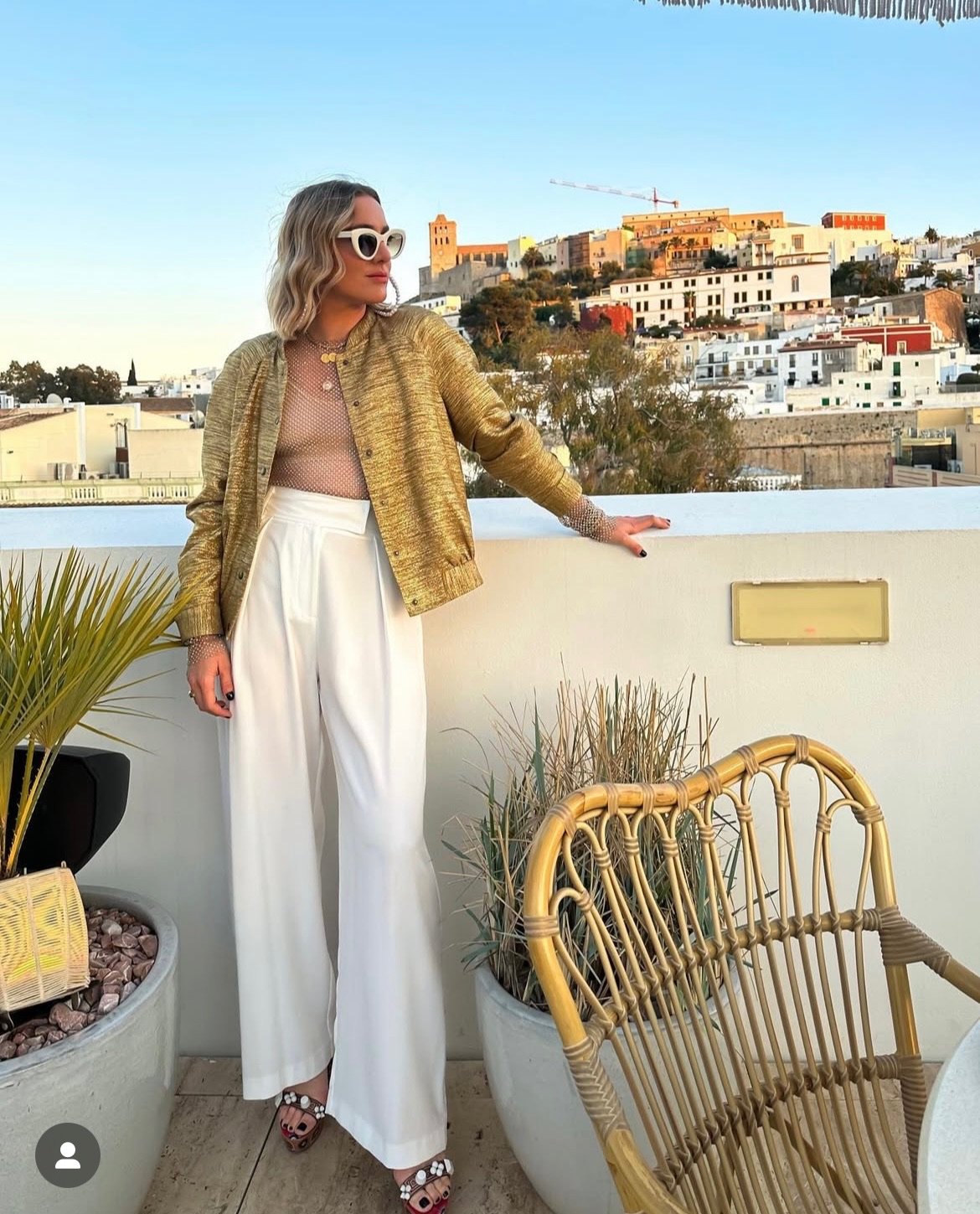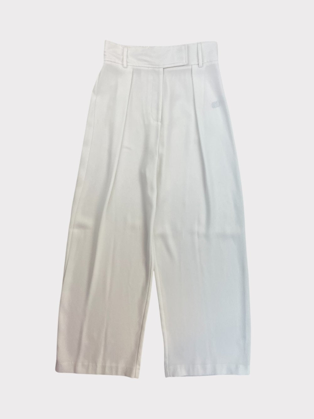 Cream crepe wide leg trousers with elasticated panel at back waist