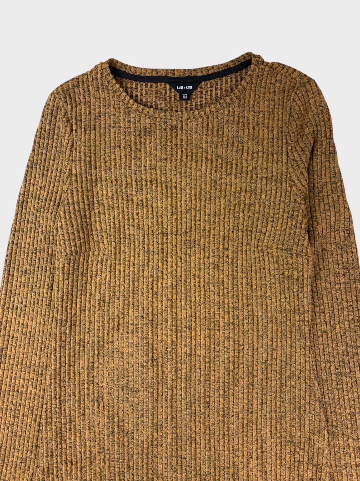 The Callie Fluted Midi Dress in Mustard Melange