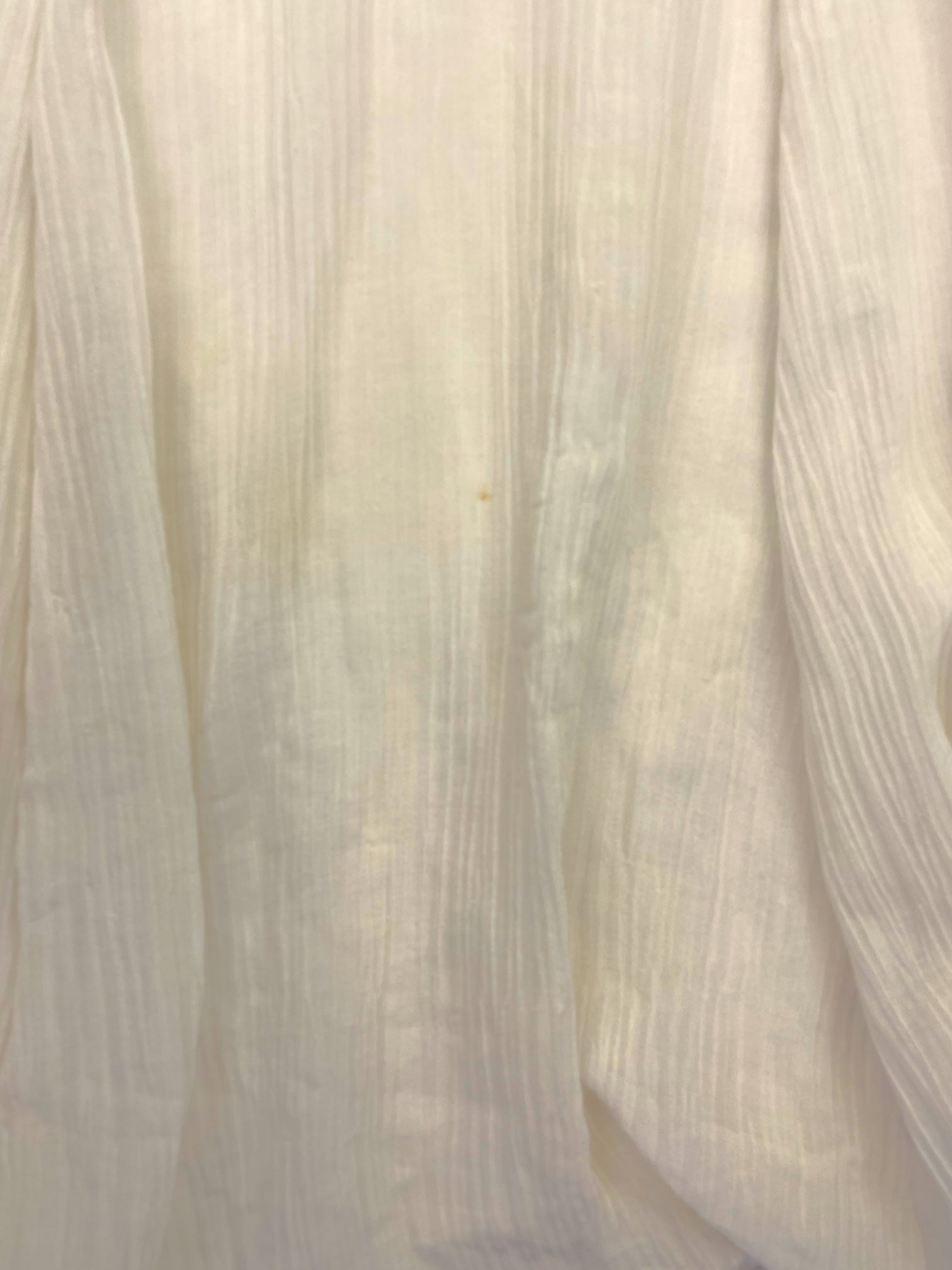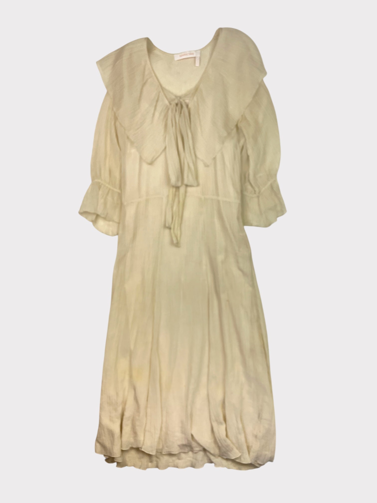 Natural white sheer crinkle silk blend fabric midi dress with collar and neck tie detail