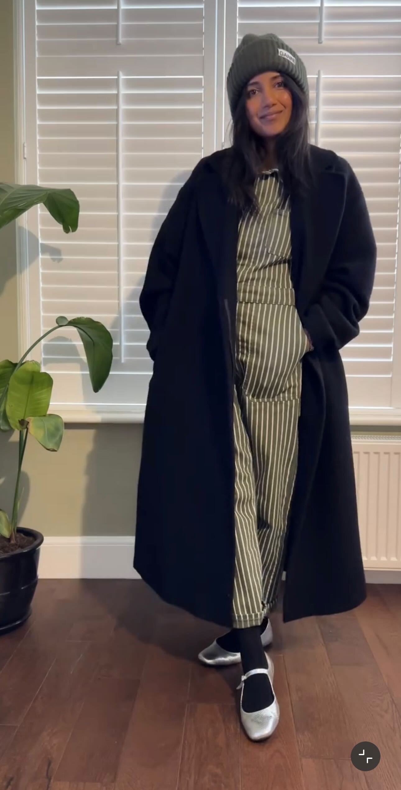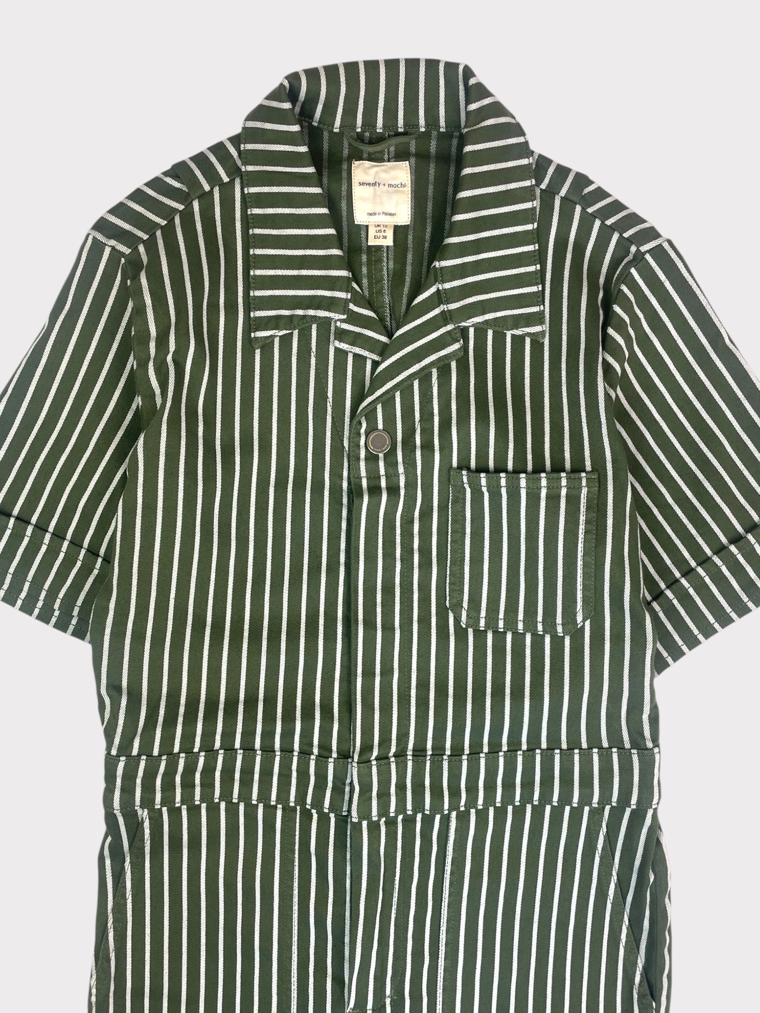 Dark green & cream stripe short sleeve zip-up jumpsuit with multiple pockets
