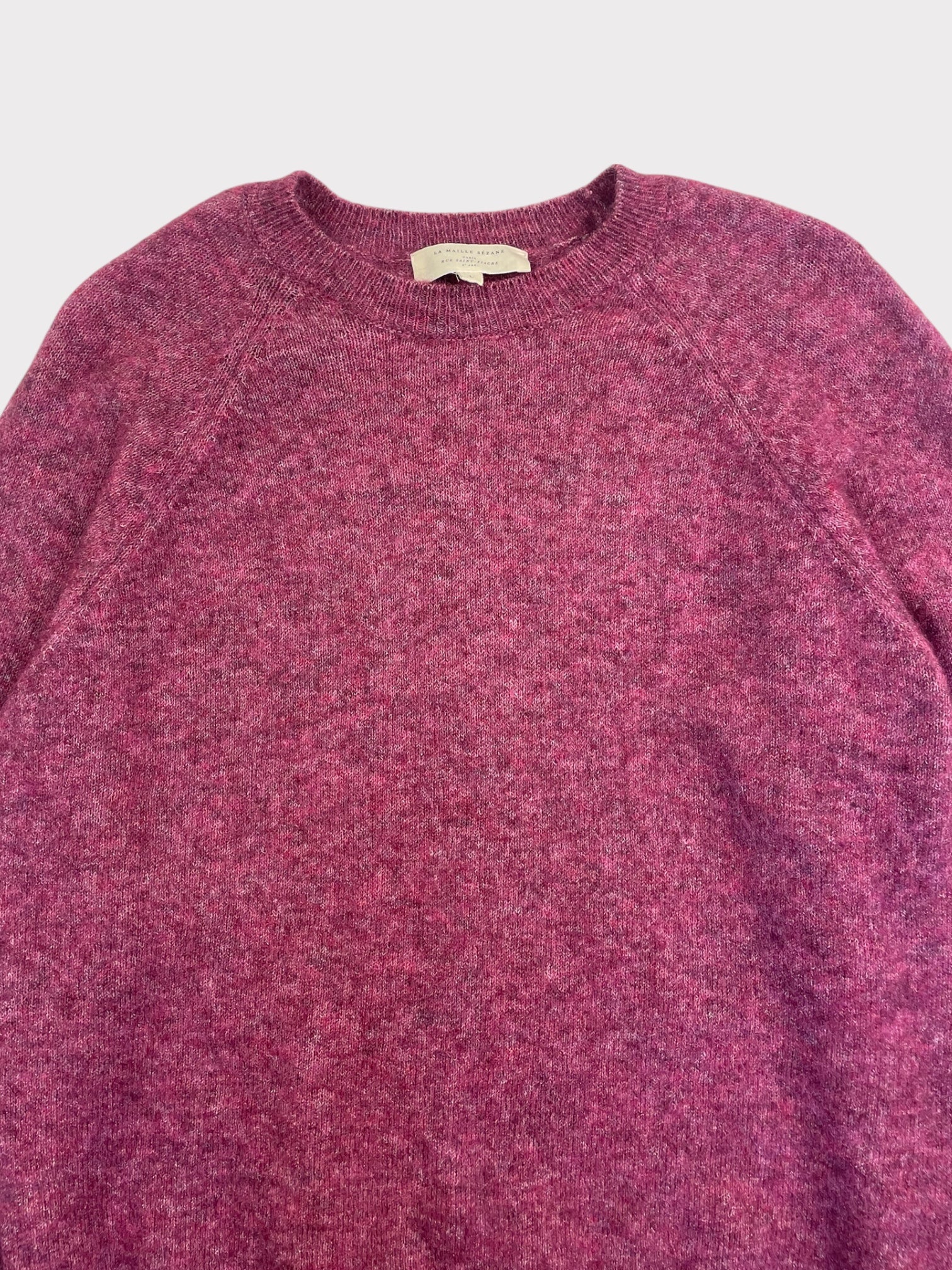 Burgundy knitted jumper with long sleeve and pleat at cuff with embellished button detail