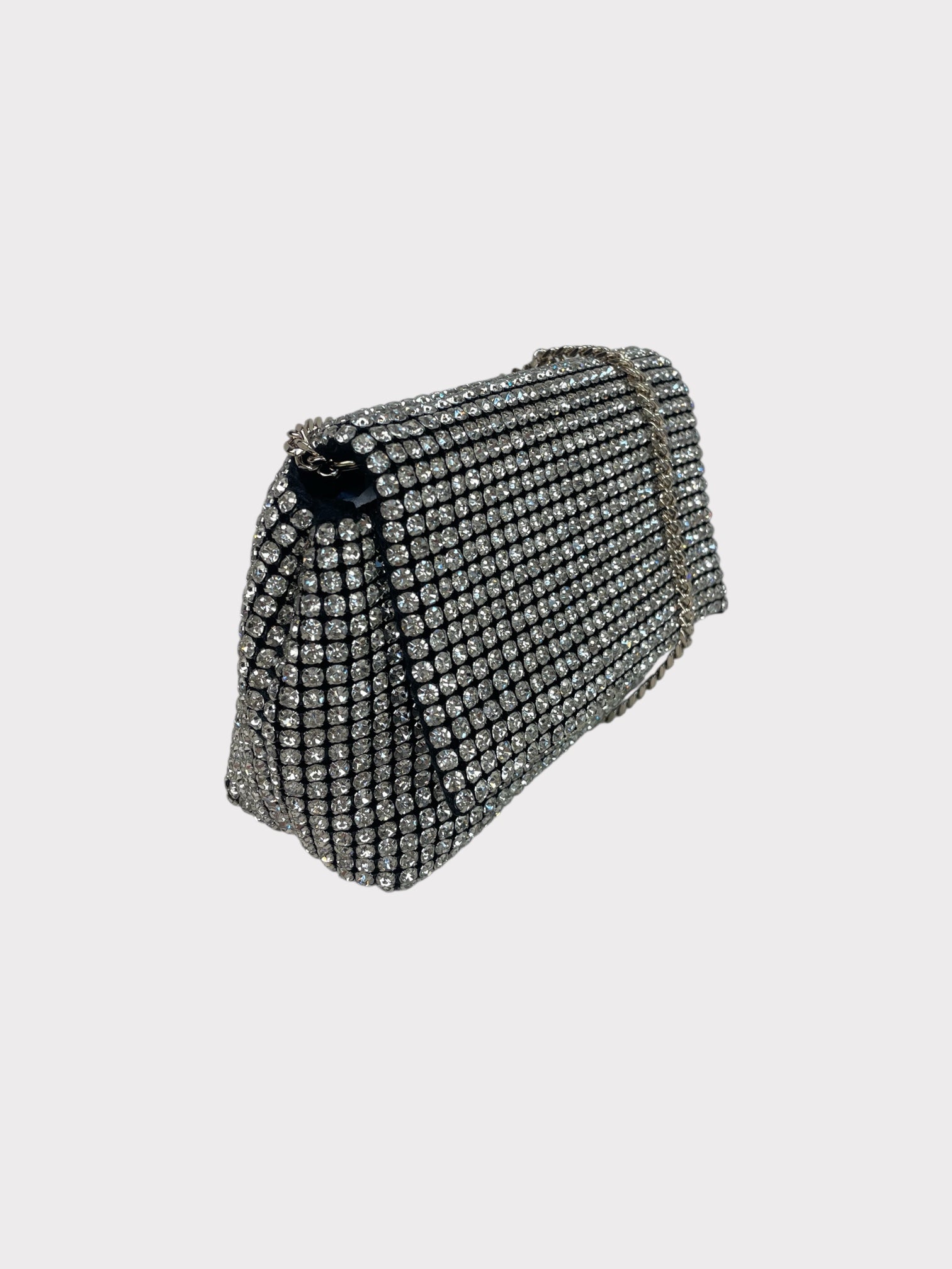 Silver rhinestone embellished mini evening bag with silver chain strap